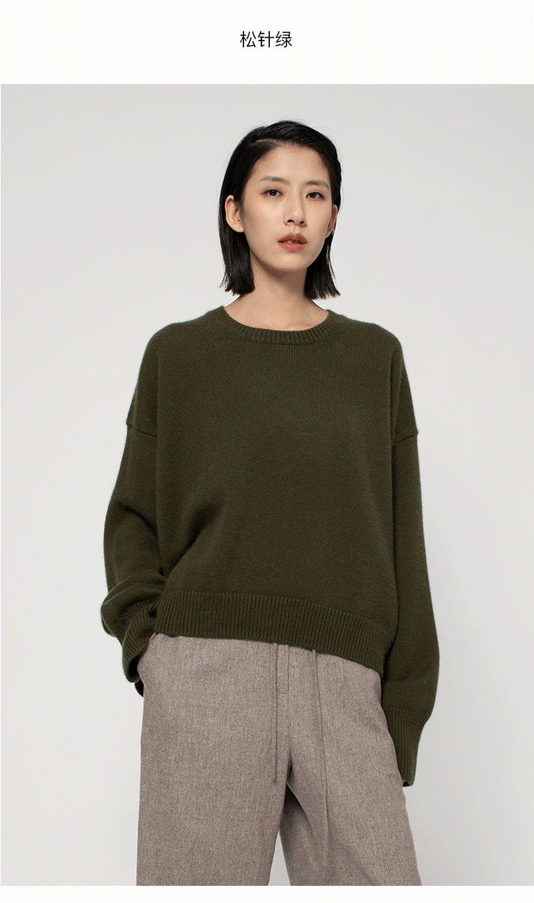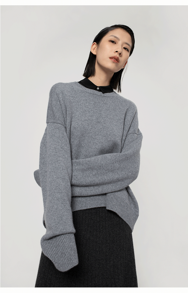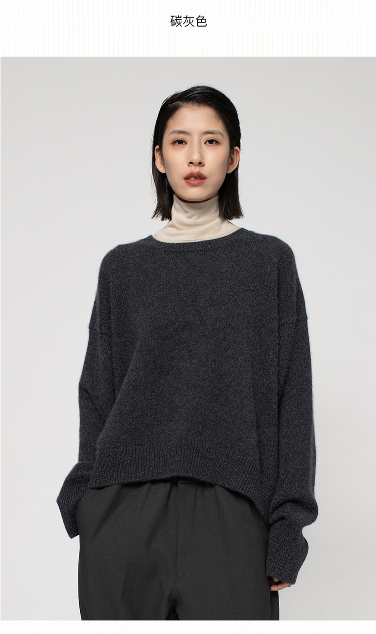 322工房纯羊绒衫女新款秋冬宽松廓形套头百搭加厚保暖针织衫毛衣