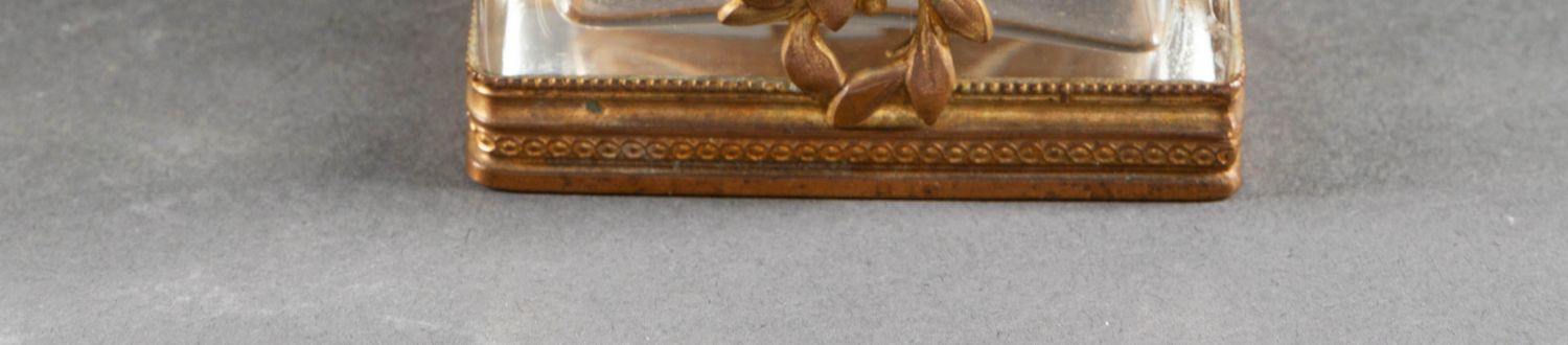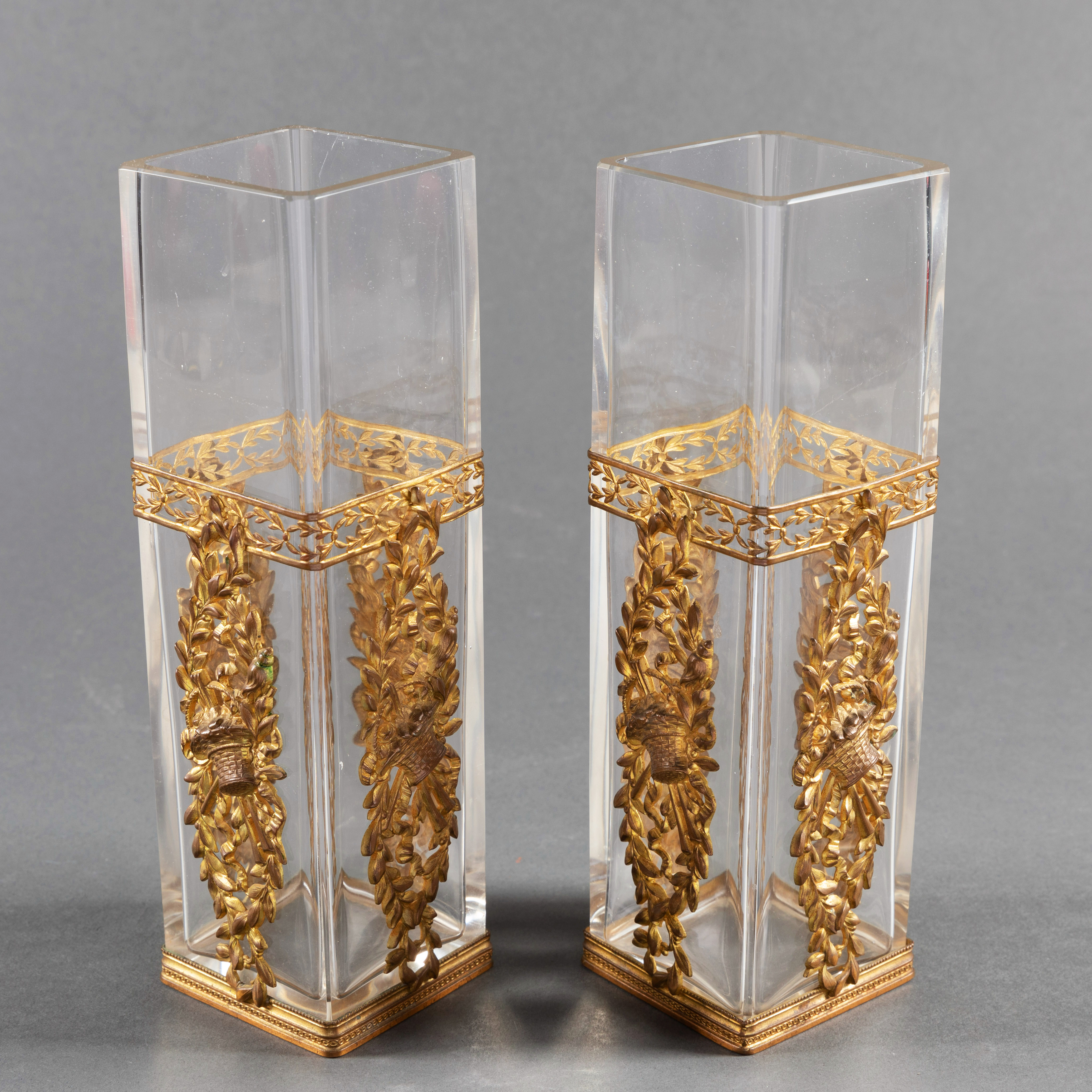 独角鹿西洋古董1880年代法国巴卡拉工坊铜鎏金镶嵌水晶花瓶一对