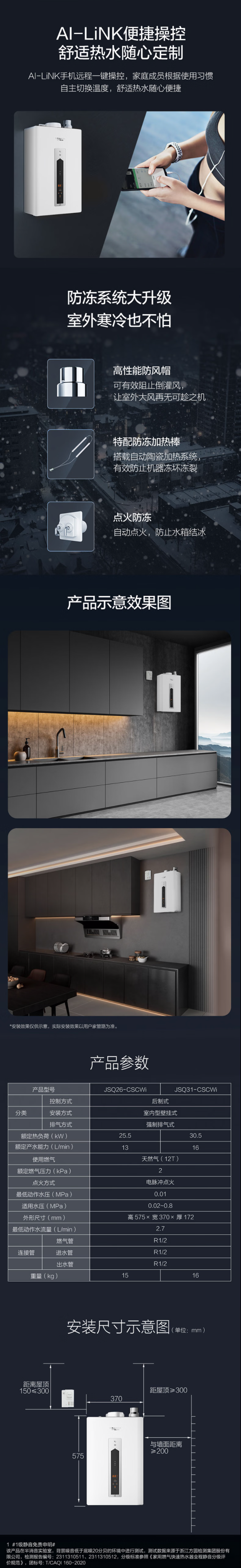 史密斯(510829)燃气热水器JSQ26-CSCWi家用一级静音恒温舒适大水量天然气热水器13L