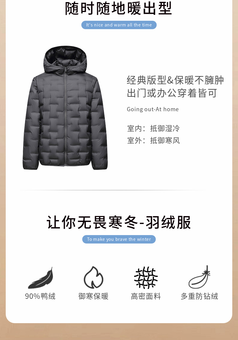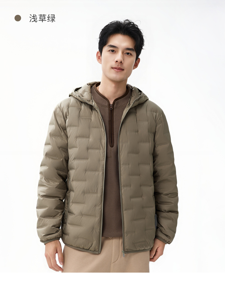 【鸭绒】圣得西男士连帽薄款羽绒服2025冬运动休闲短款保暖外套