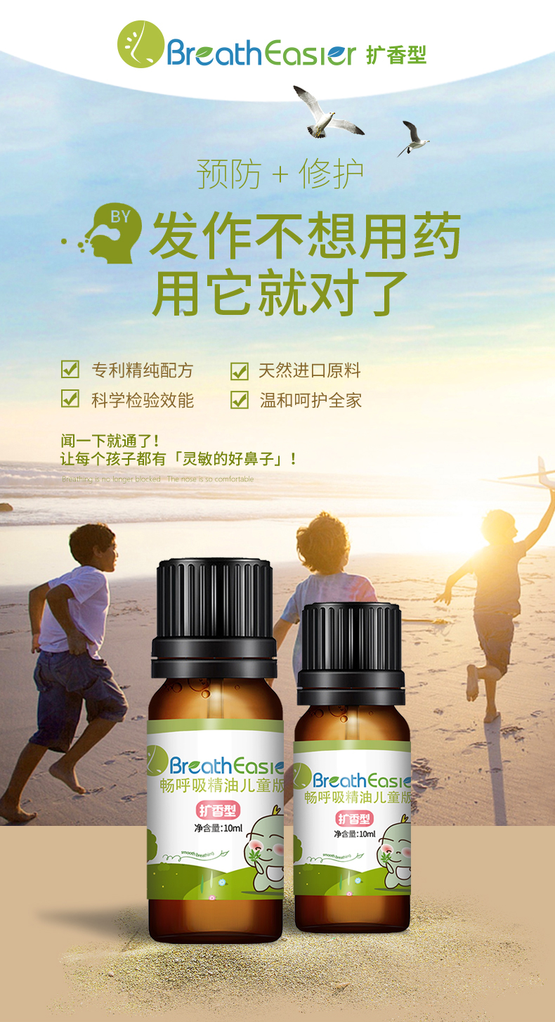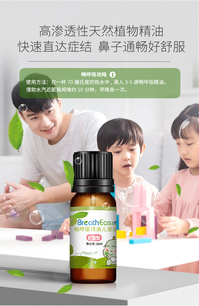 畅呼吸精油原料 清畅呼吸鼻通精油 儿童版扩香型畅呼吸精油