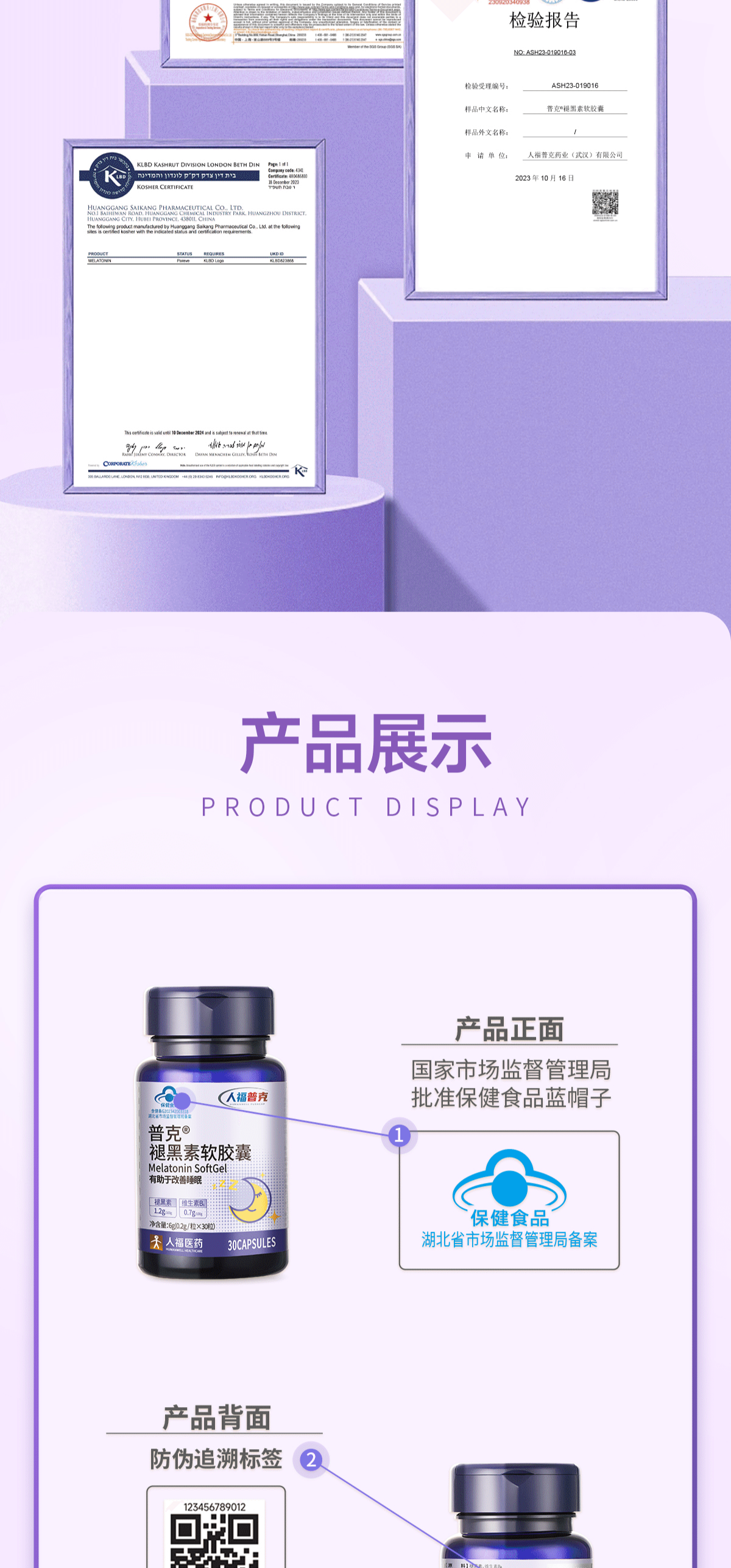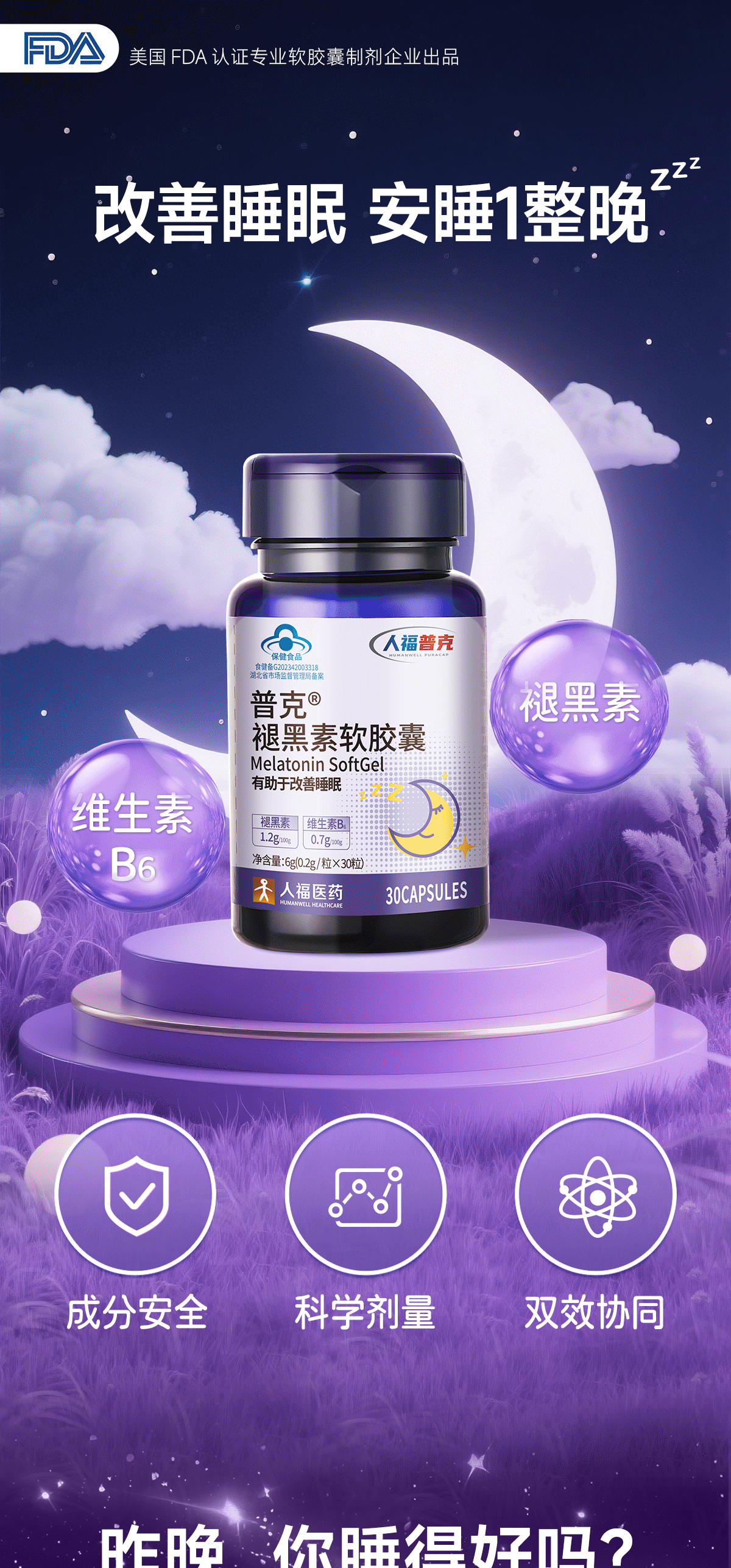 人福普克褪黑素软胶囊有助于改善睡眠助眠官方正品30粒0.2g*30粒