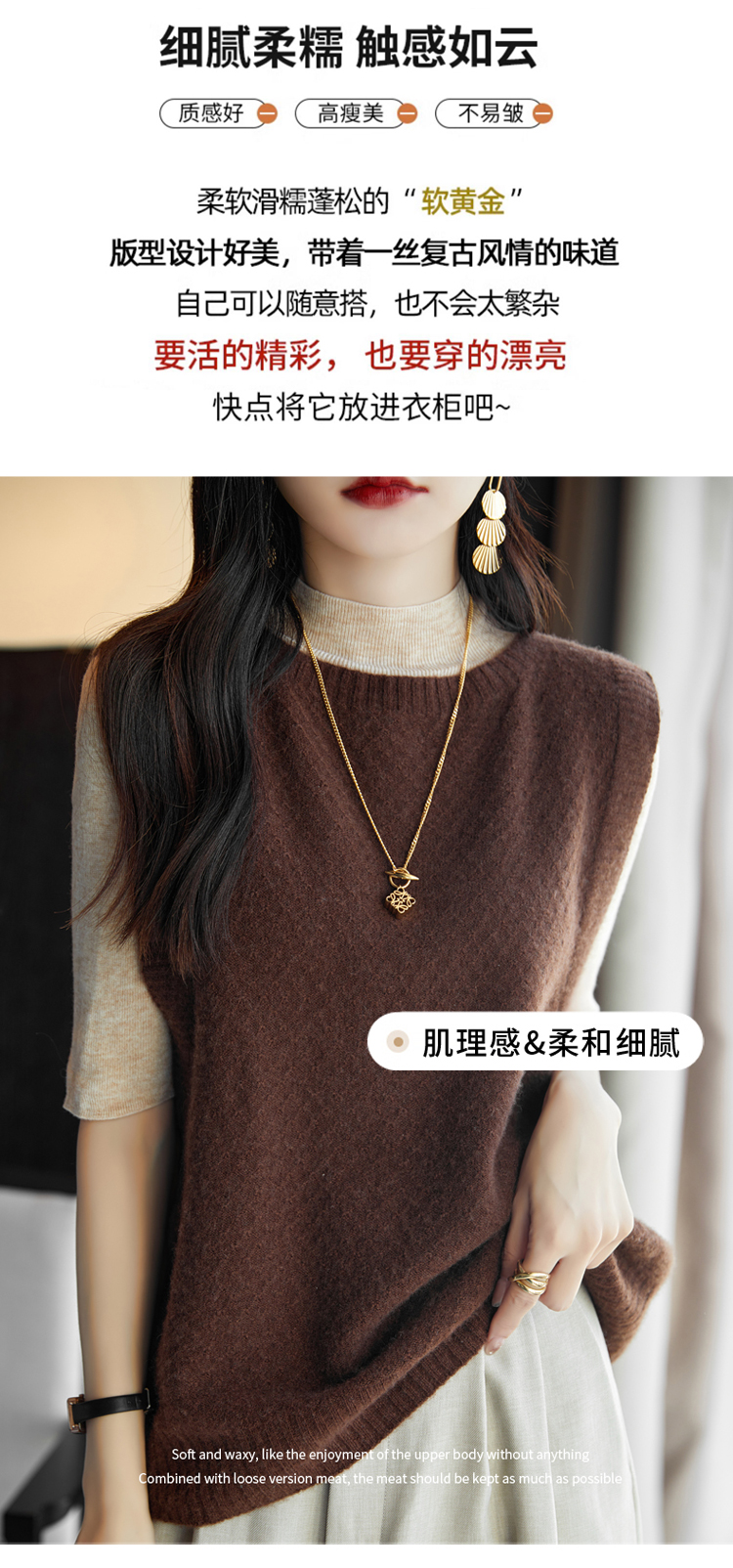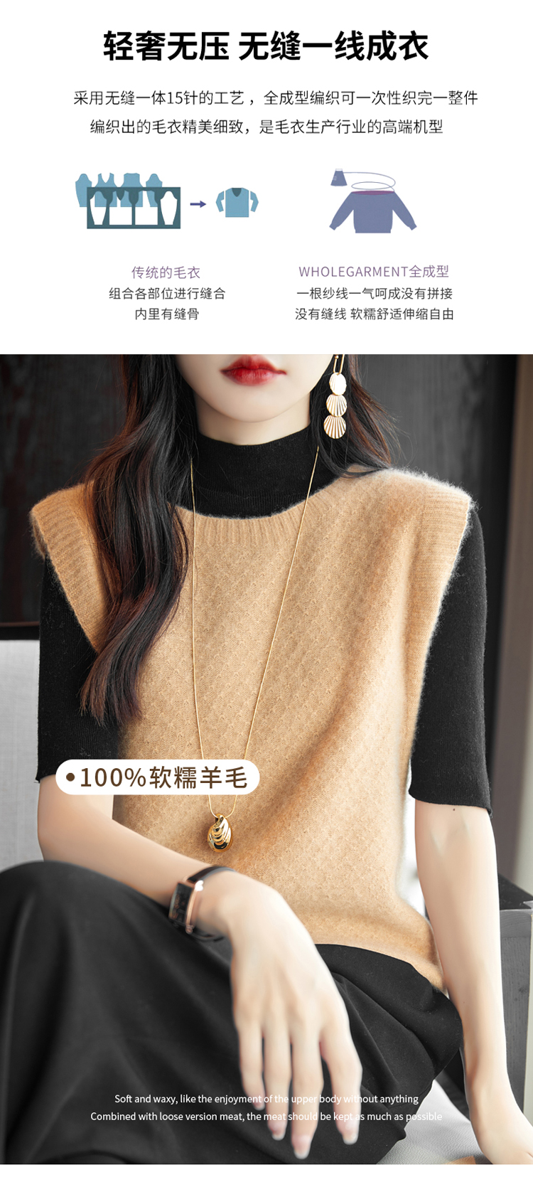 Avann阿曼衣无缝圆领简约羊毛马甲ZM061