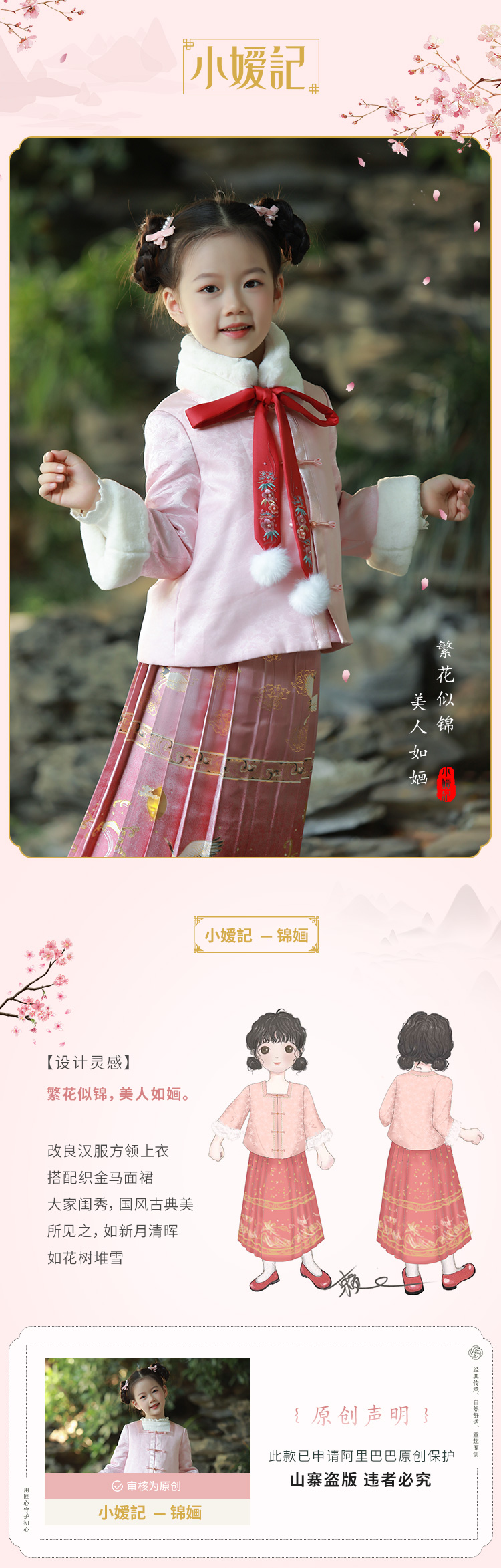 小嫒記国潮中国风新中式高端童装两件套连衣裙-锦婳