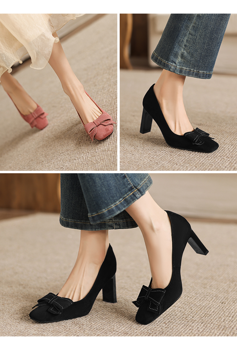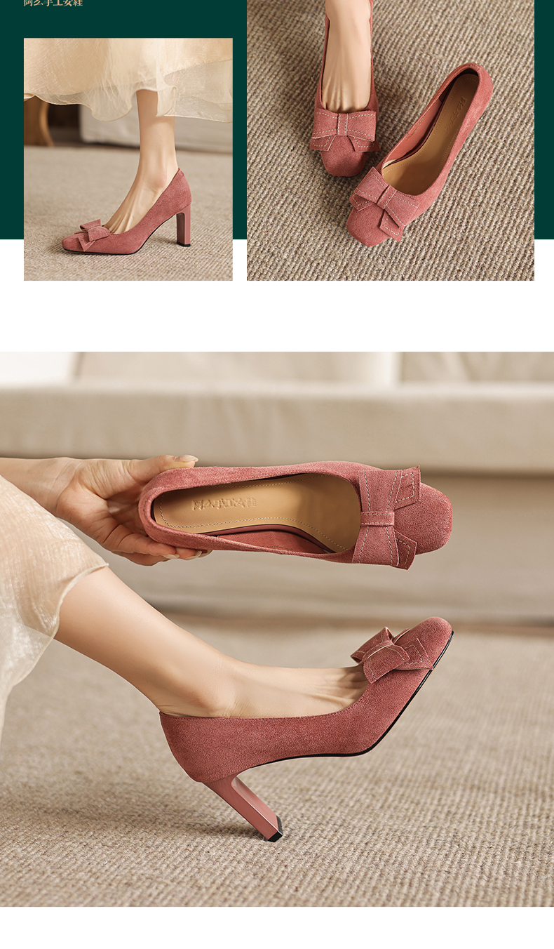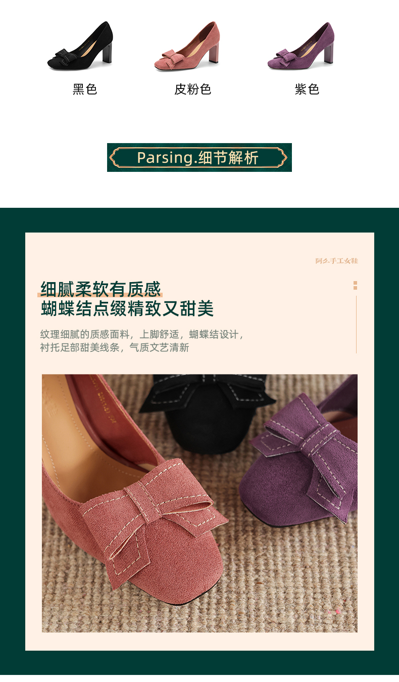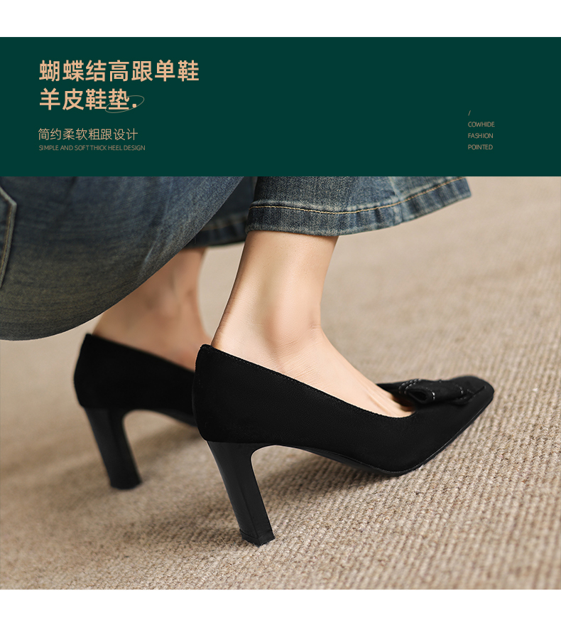 阿么手工女鞋2026春季优雅蝴蝶结浅口单鞋百搭新款气质高跟鞋8CM