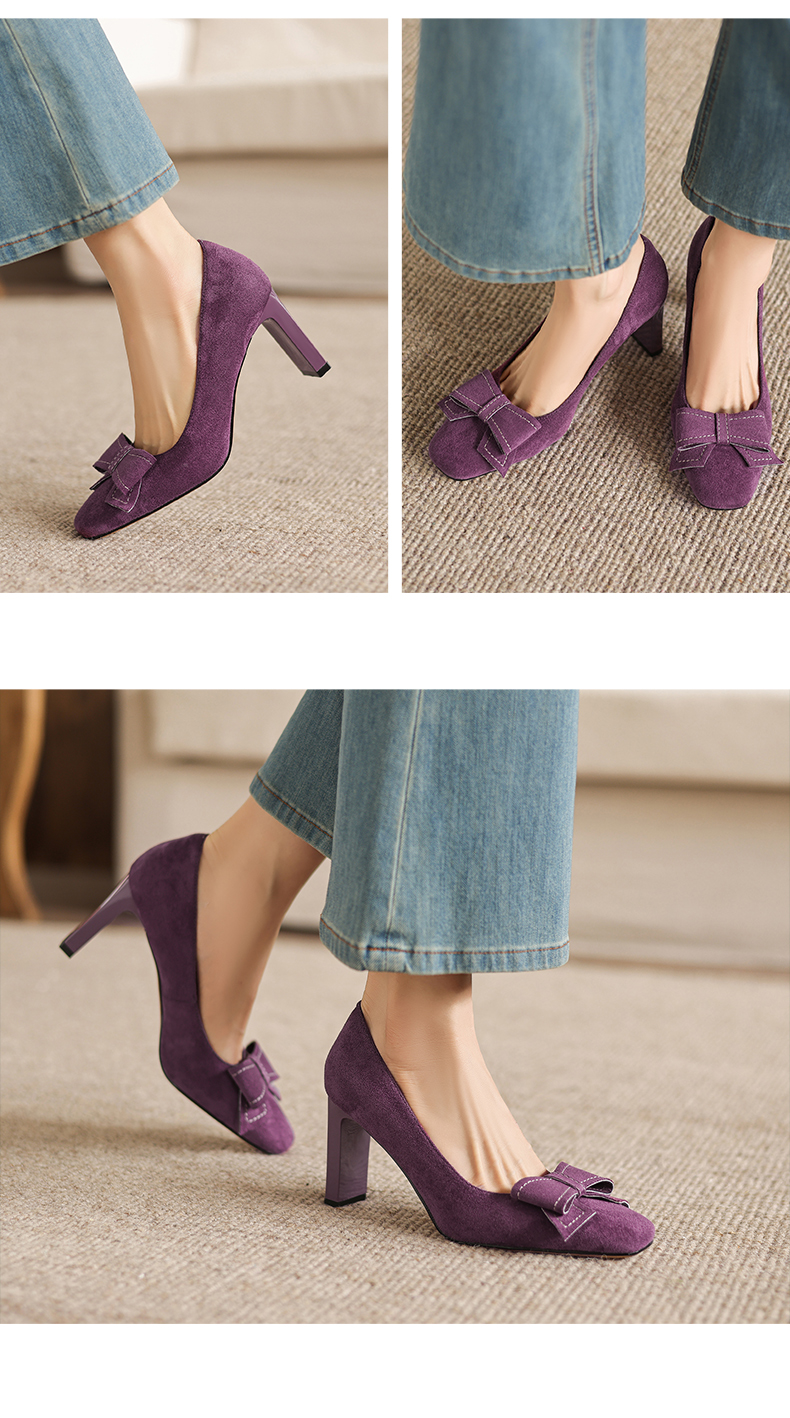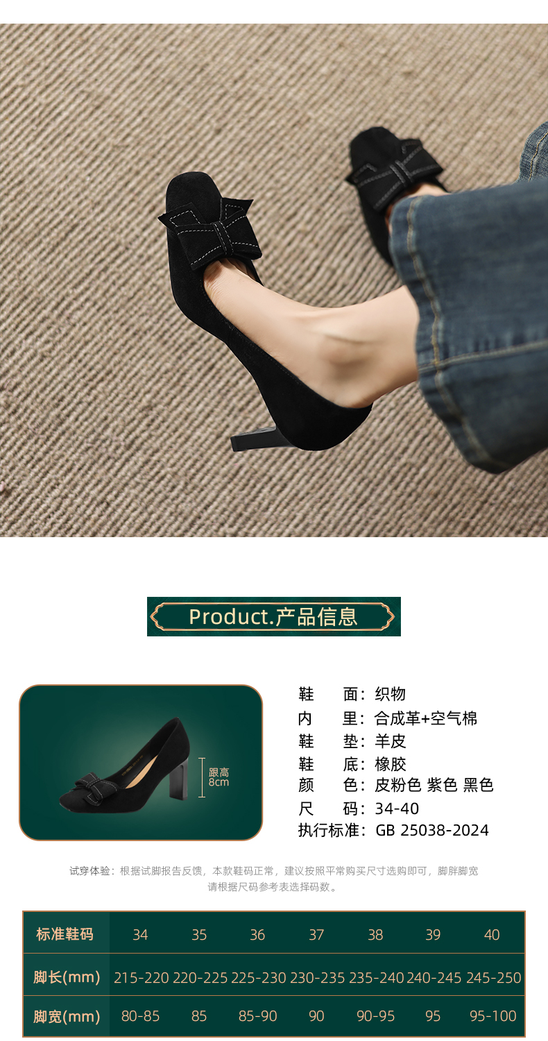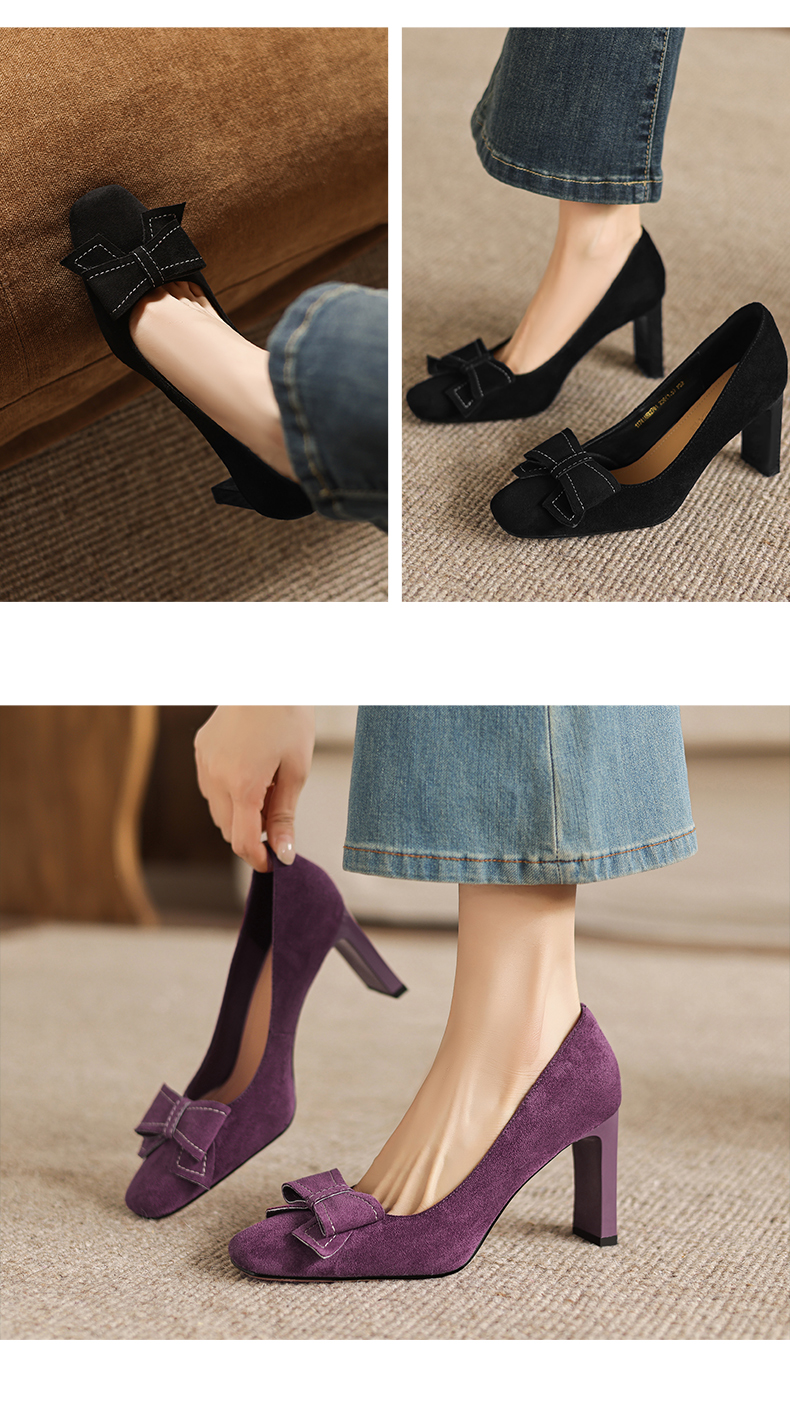 阿么手工女鞋2026春季优雅蝴蝶结浅口单鞋百搭新款气质高跟鞋8CM
