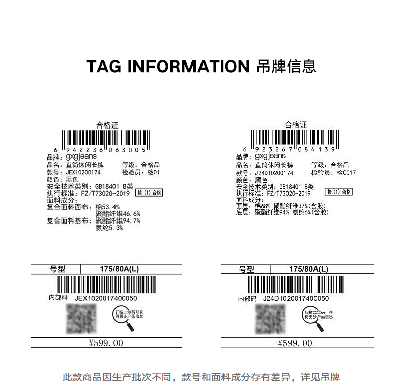 gxg.jeans男装冬季热卖直筒休闲长裤休闲裤J24D10200174