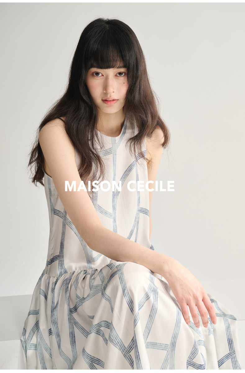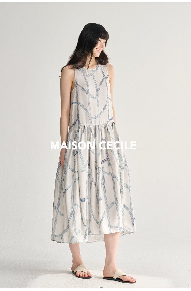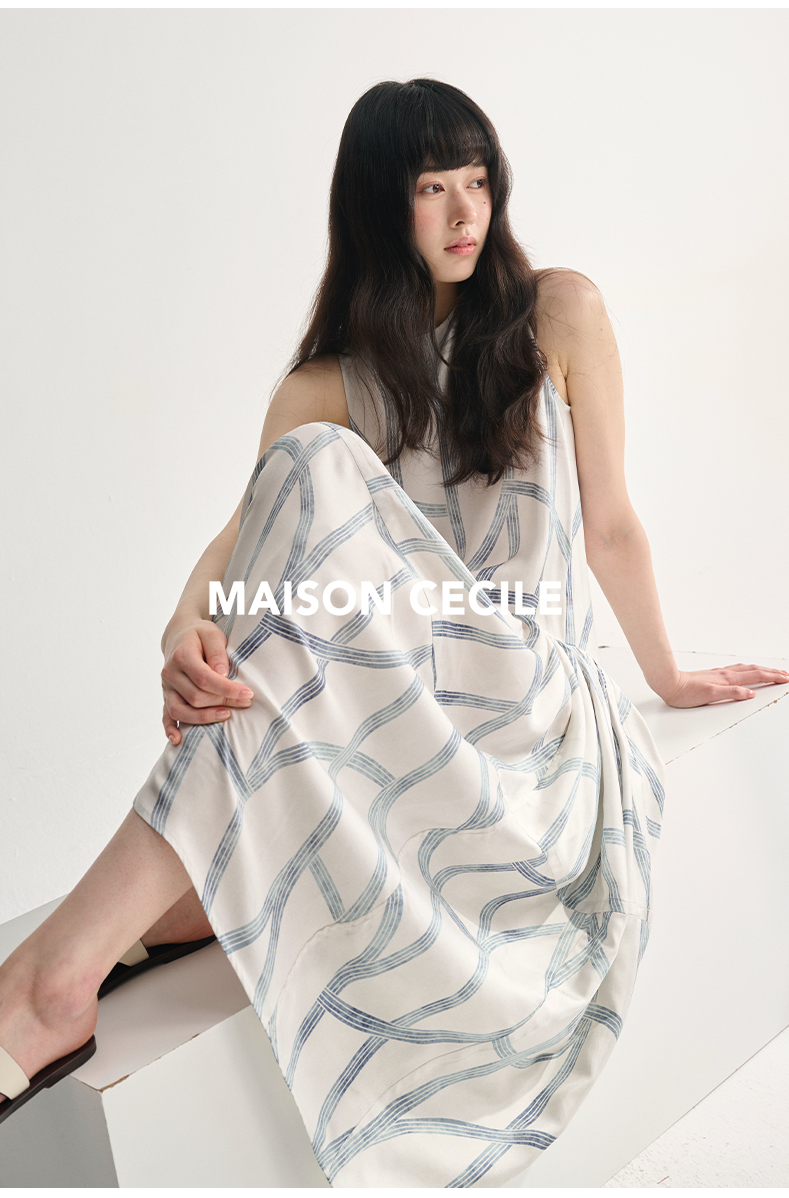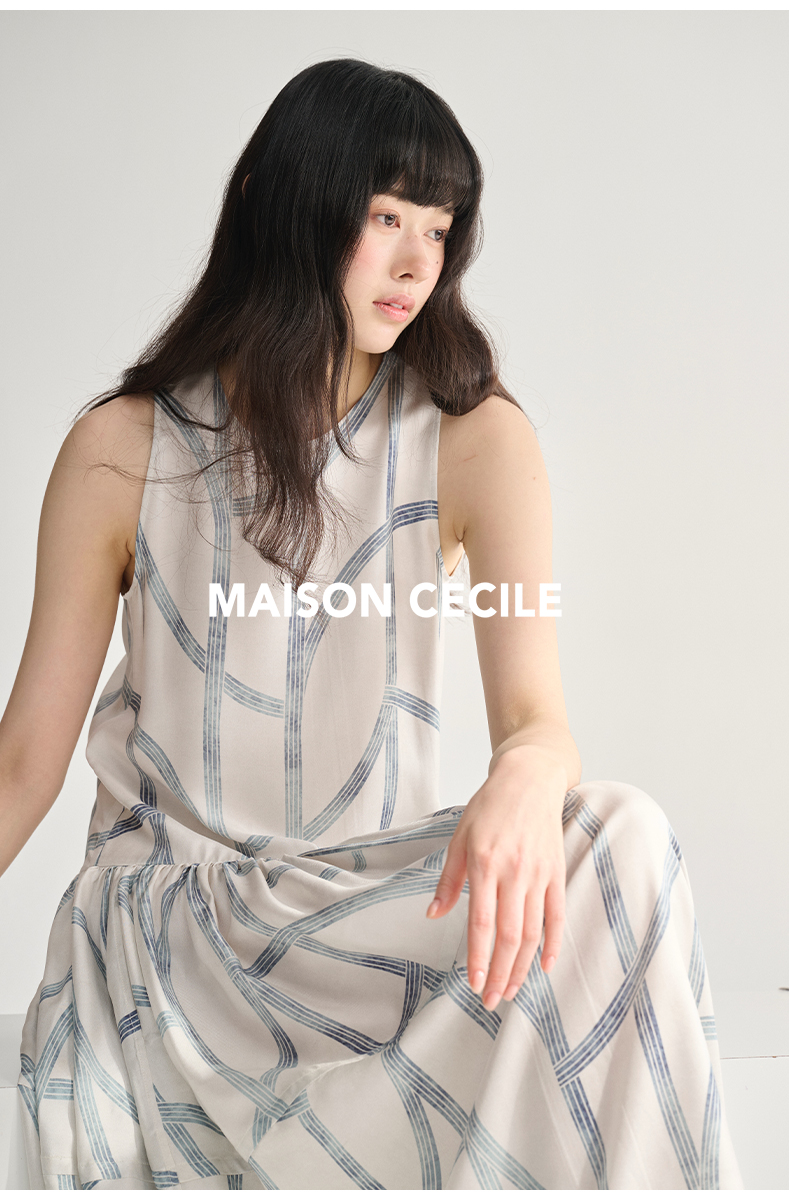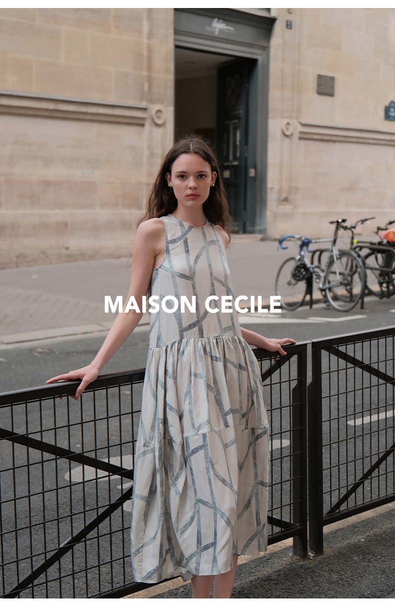 MAISON CECILE设计师花纹桑蚕丝设计感不规则树枝线条背心连衣裙