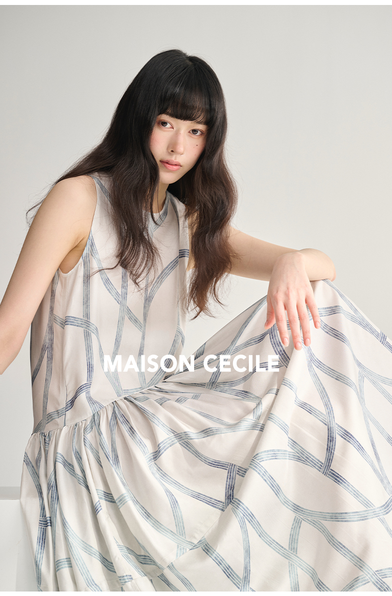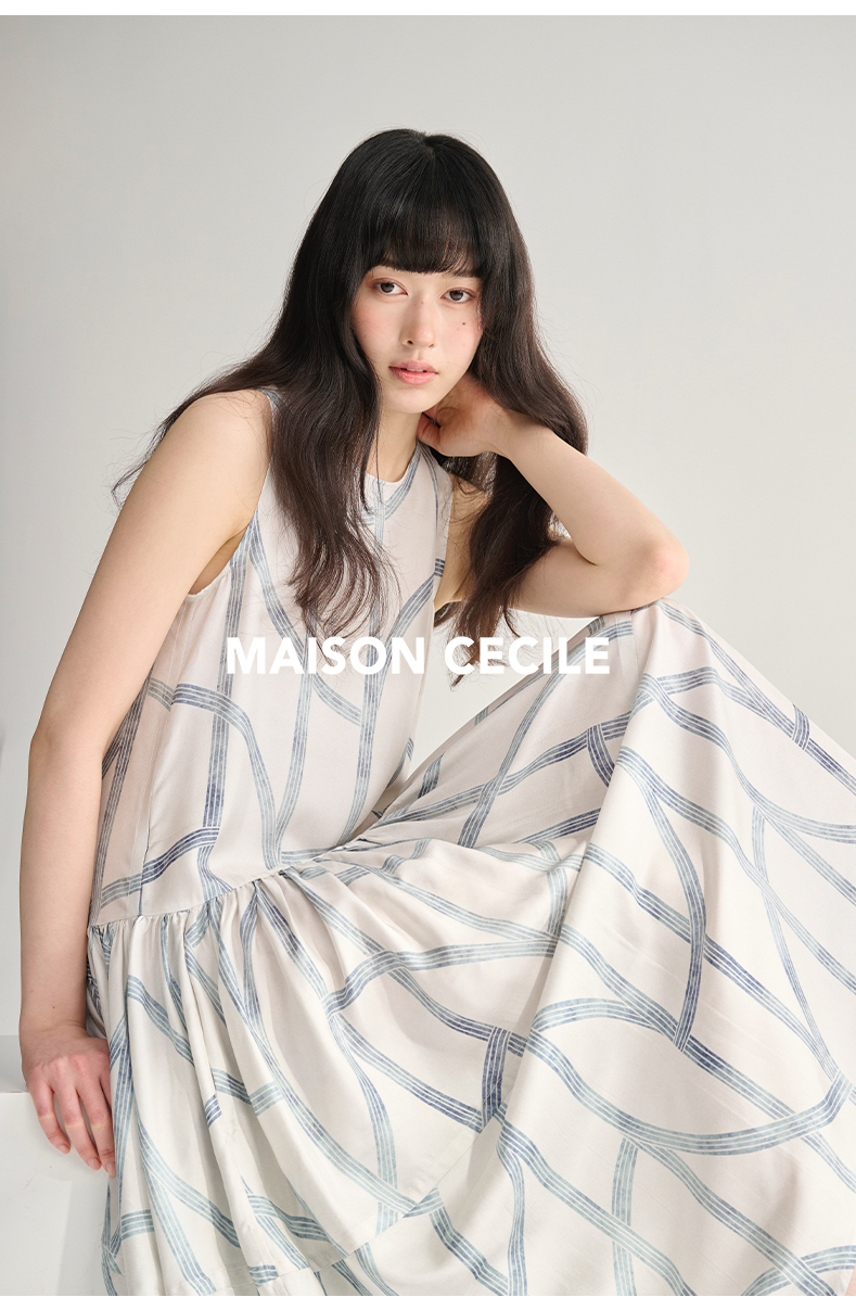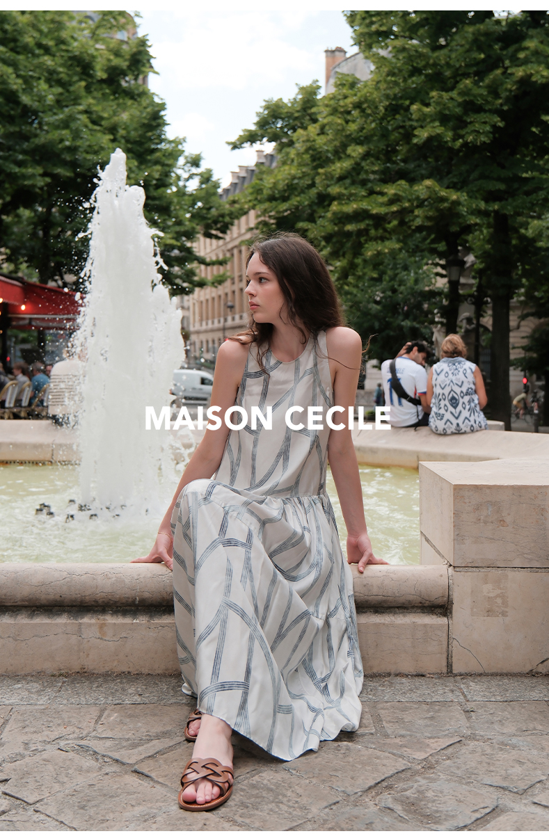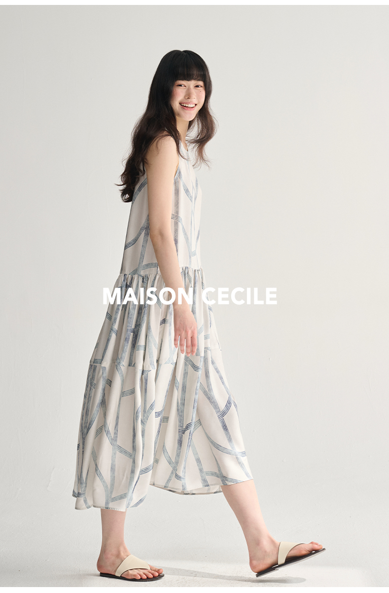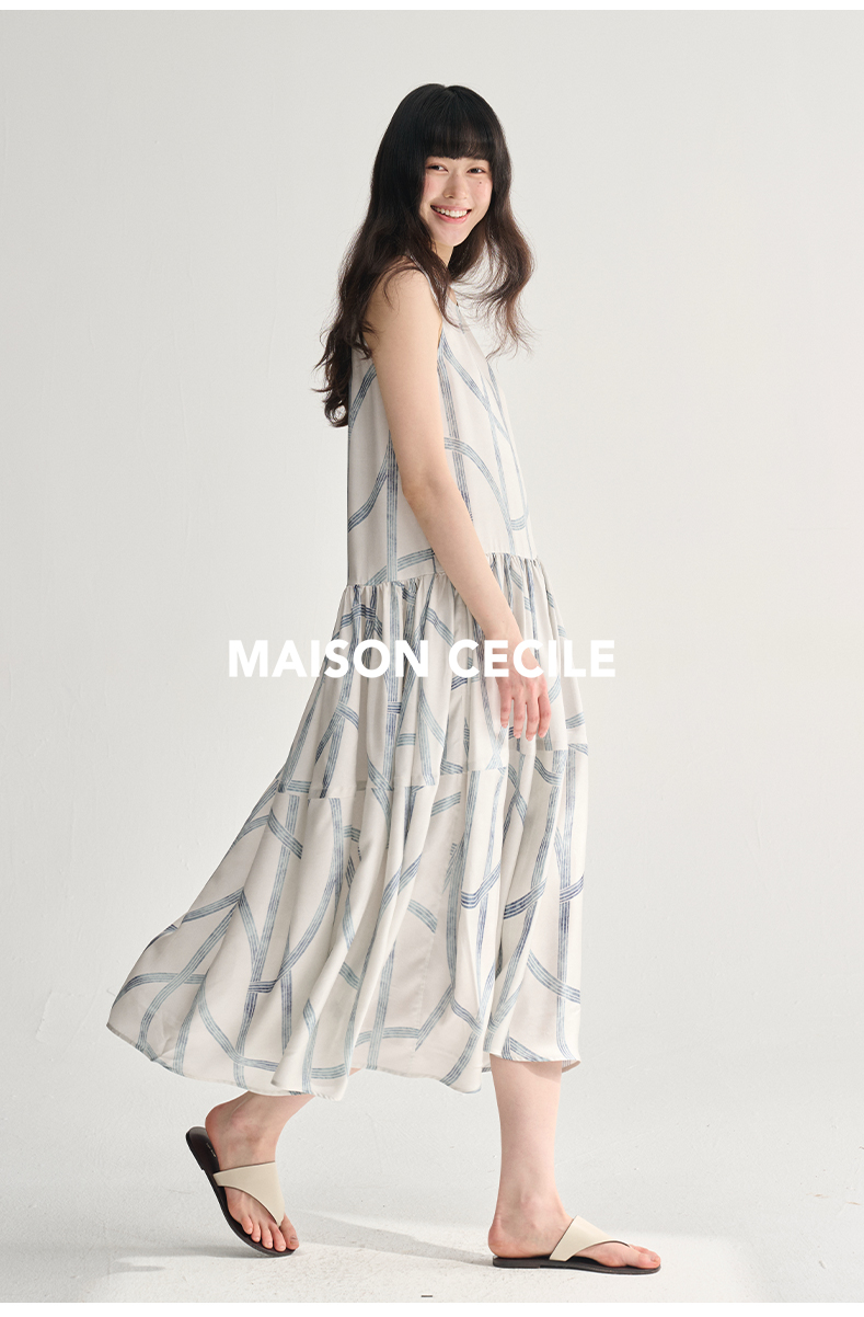 MAISON CECILE设计师花纹桑蚕丝设计感不规则树枝线条背心连衣裙