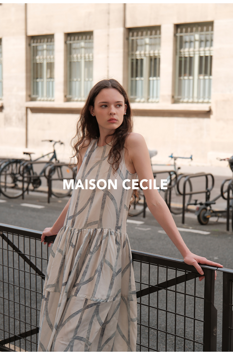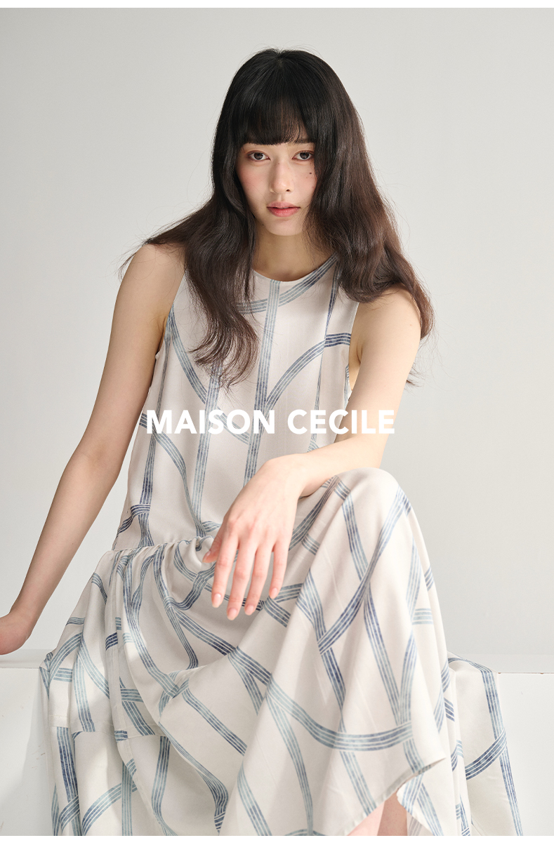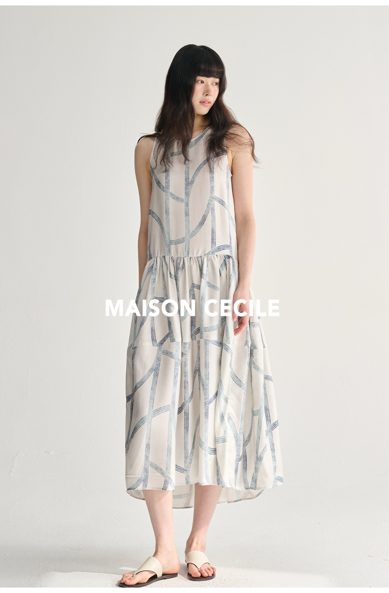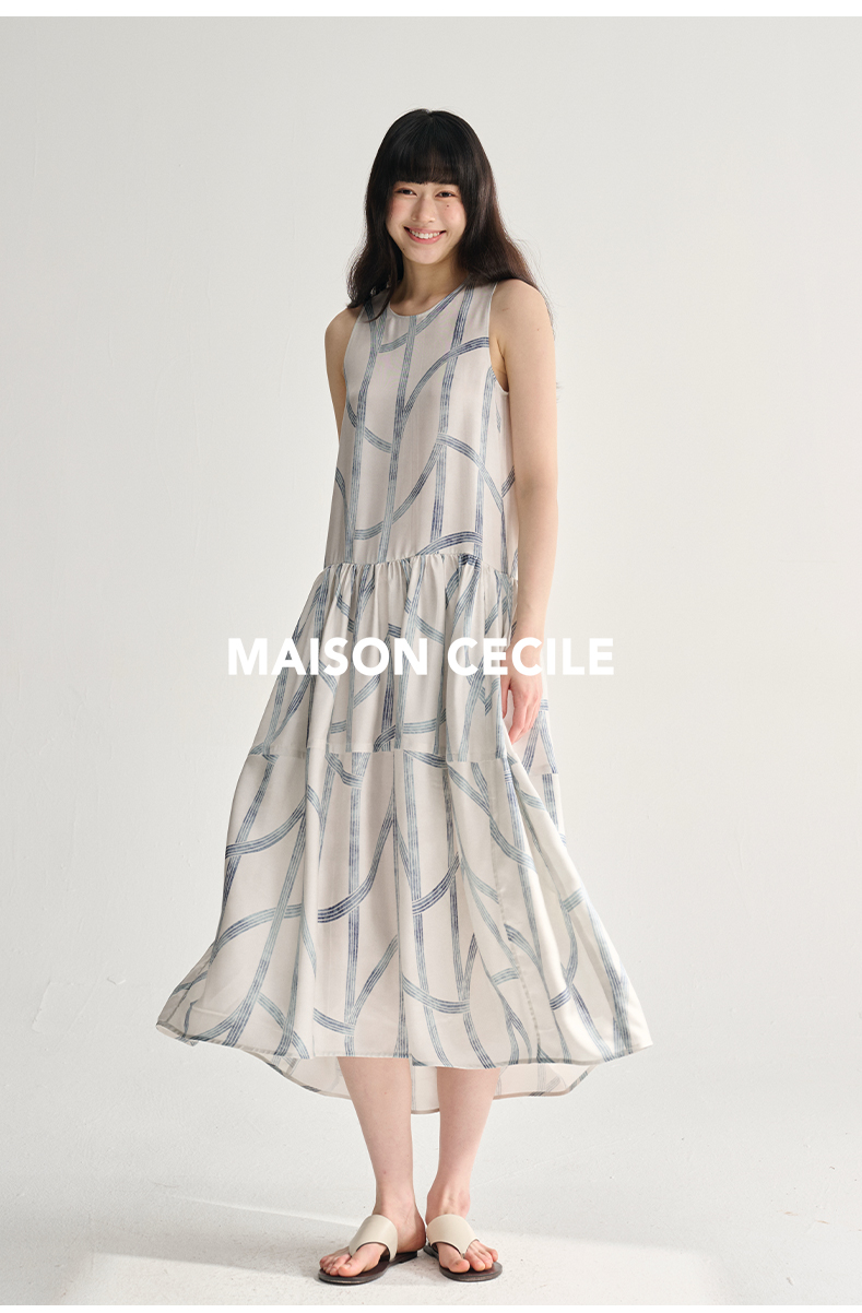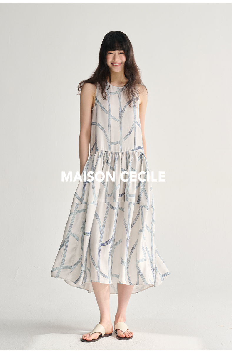 MAISON CECILE设计师花纹桑蚕丝设计感不规则树枝线条背心连衣裙
