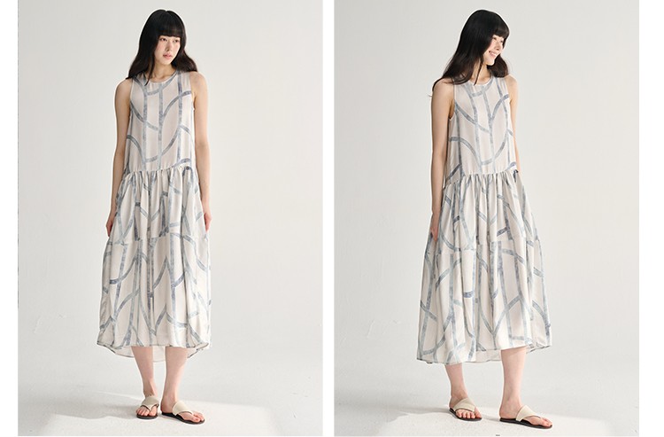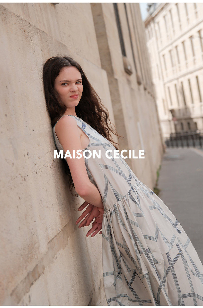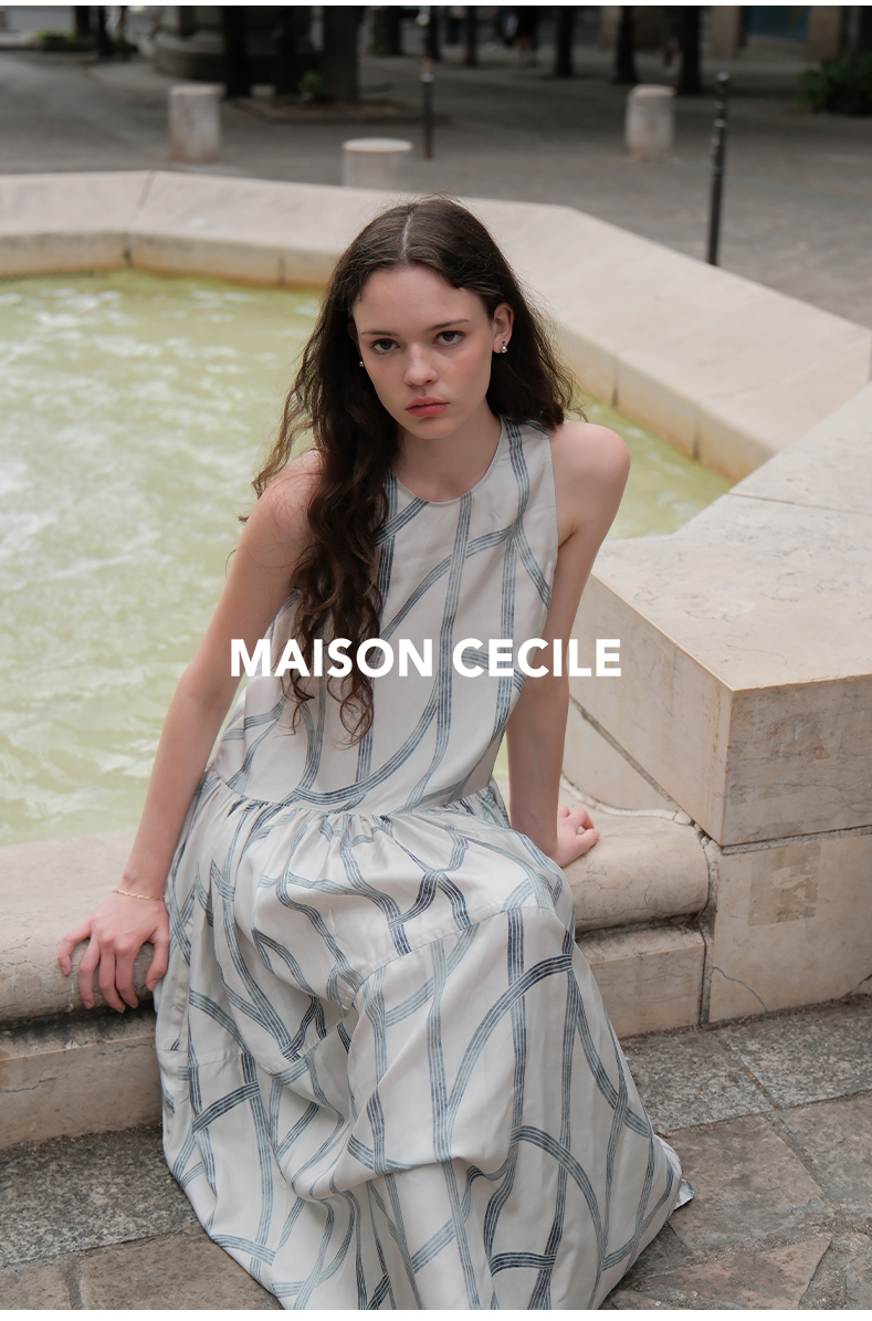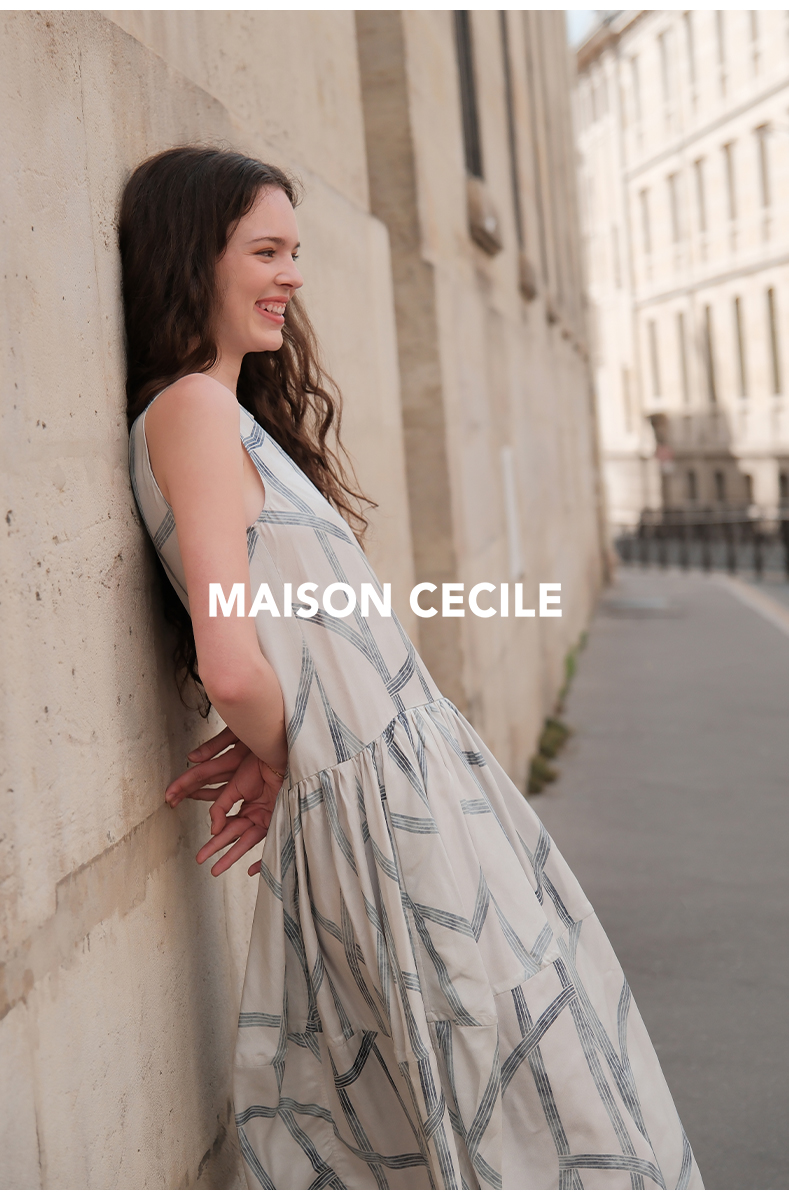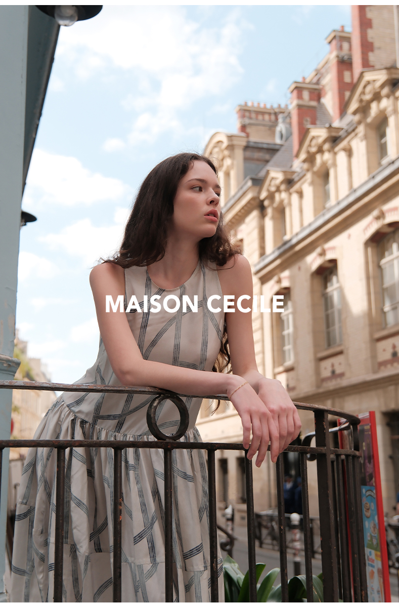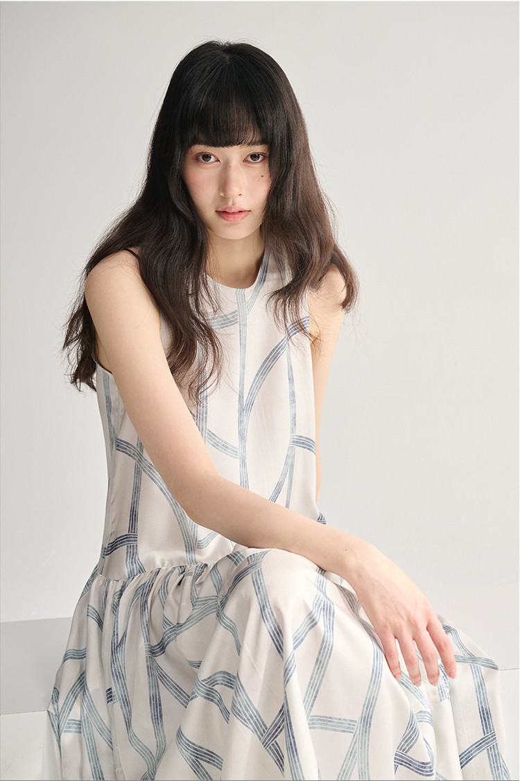 MAISON CECILE设计师花纹桑蚕丝设计感不规则树枝线条背心连衣裙