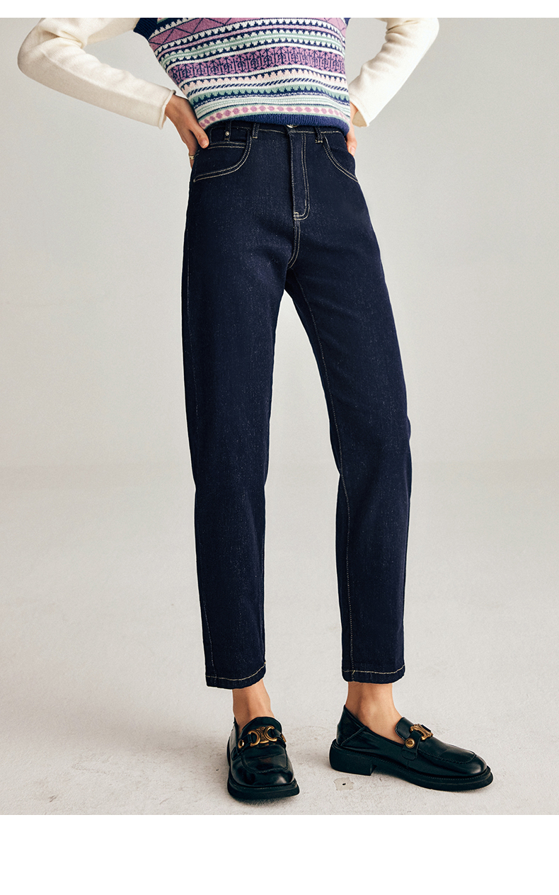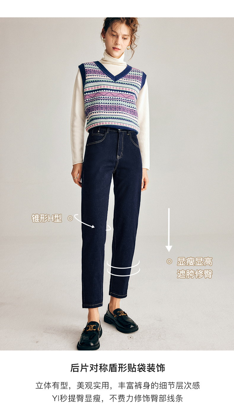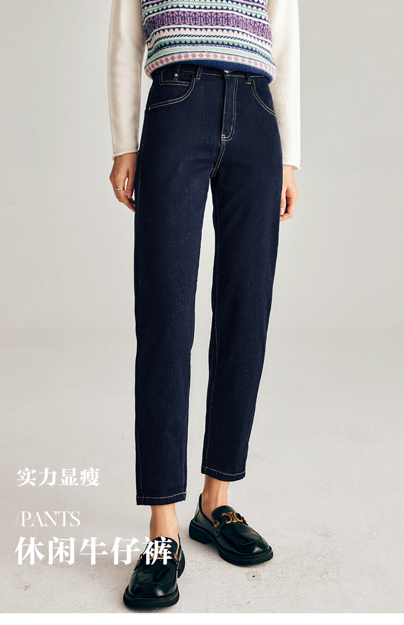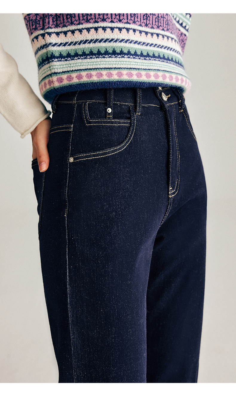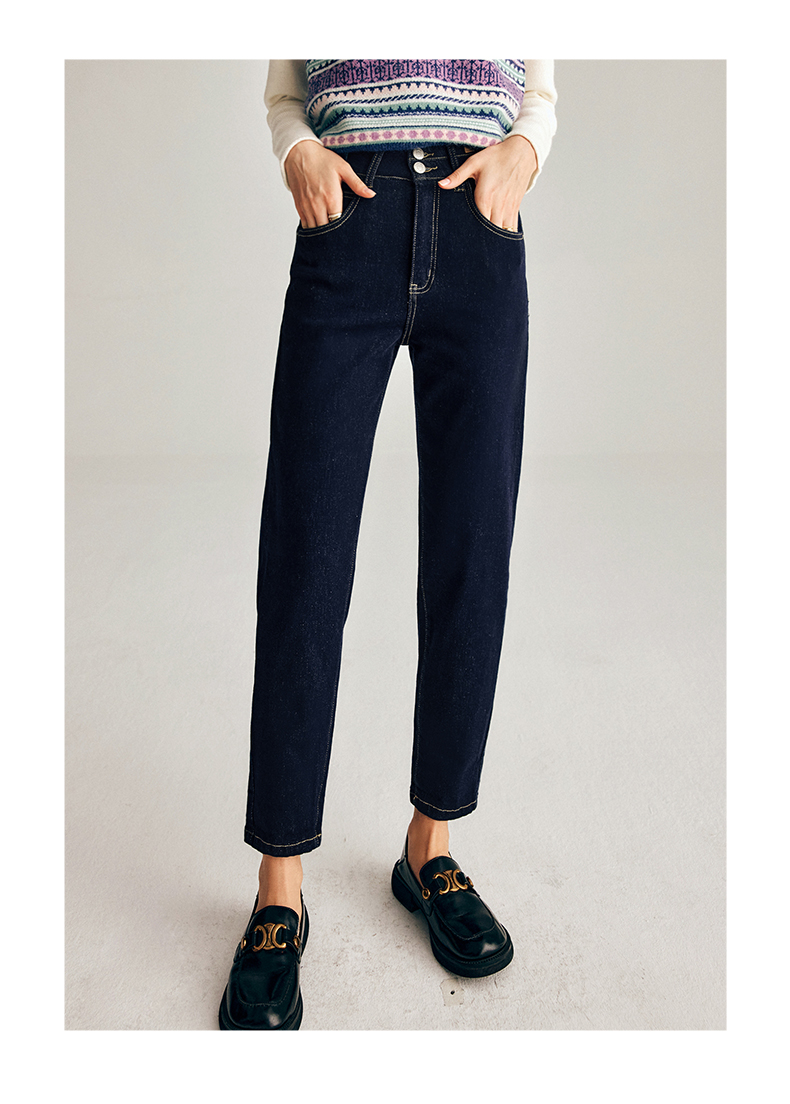 OLrain欧芮儿法式深色牛仔裤女春季2025年新款高腰直筒小脚锥形裤