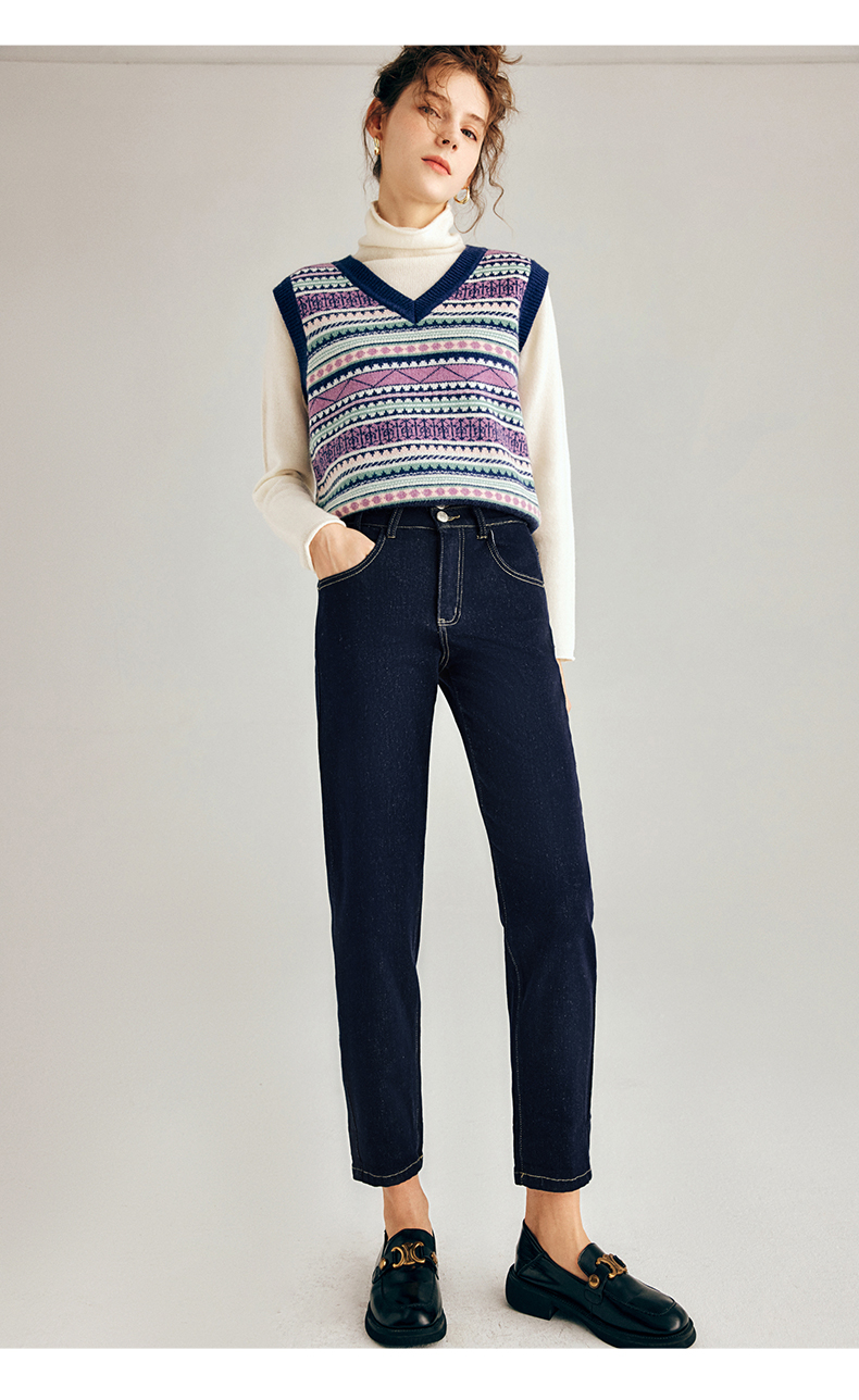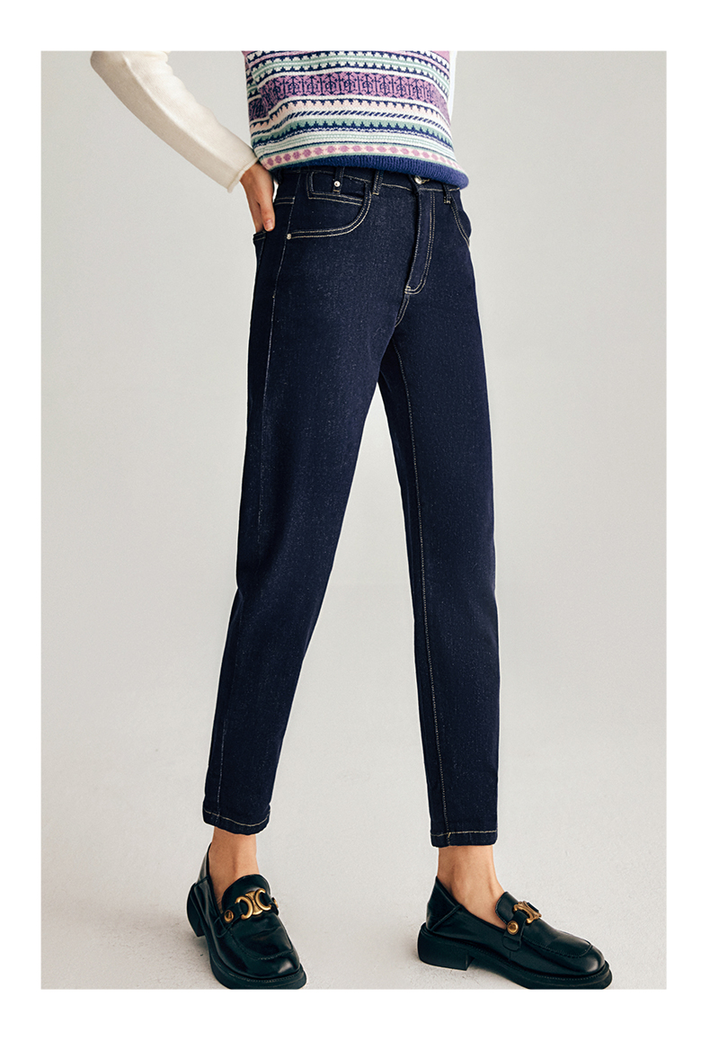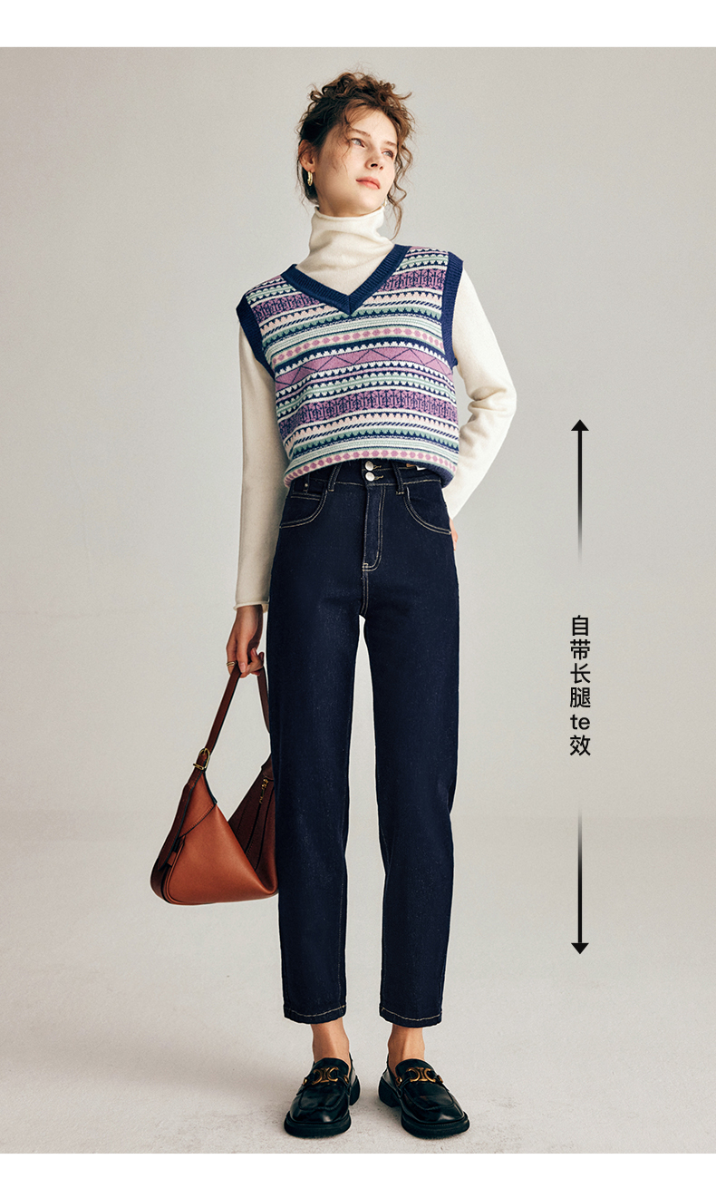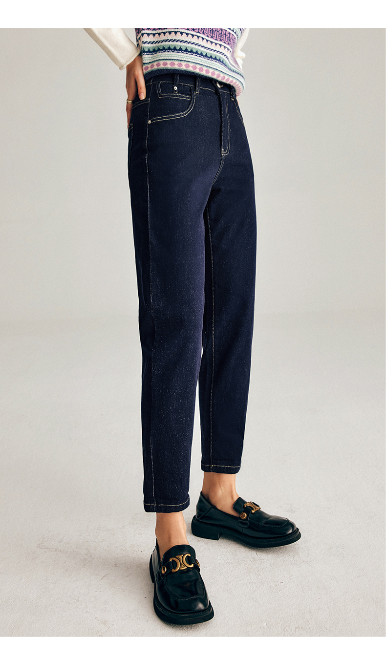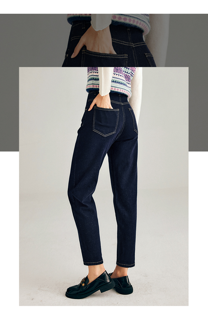 OLrain欧芮儿法式深色牛仔裤女春季2025年新款高腰直筒小脚锥形裤