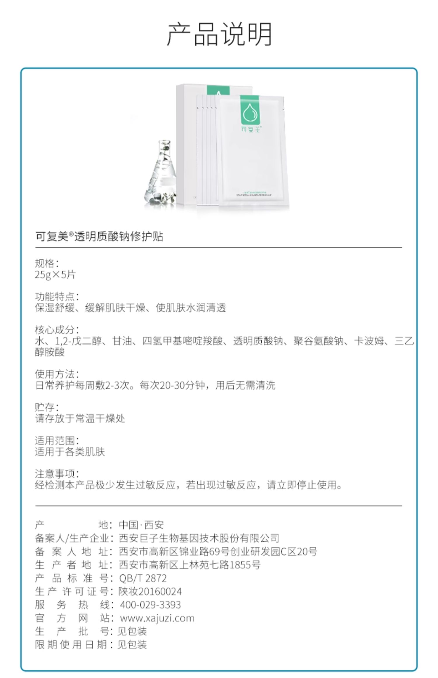 可复美透明质酸钠修护贴(小水膜) 5片/盒