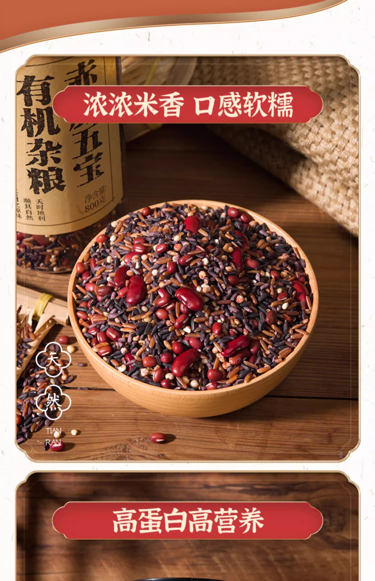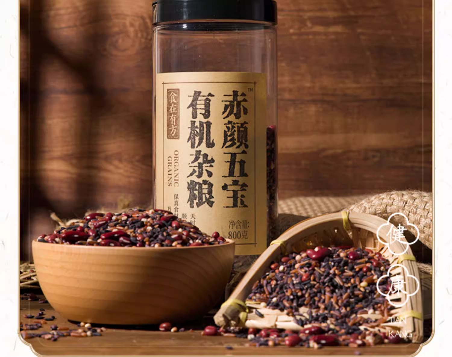 食在有方赤颜五宝有机杂粮 800g有机杂粮组合红米红高粱红小豆红芸豆红花生五谷灌装800g