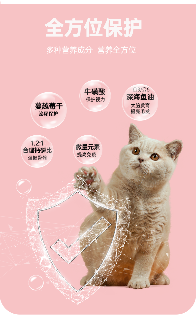 富含不饱和脂肪酸和丰富的营养,增强流浪猫自身抵抗力