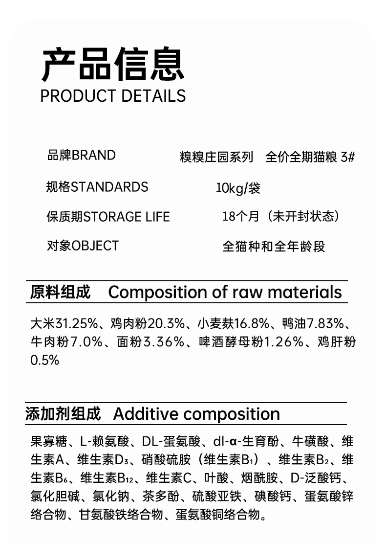 均衡营养全期猫粮(3号粮):10kg(10KG/袋)