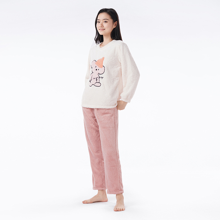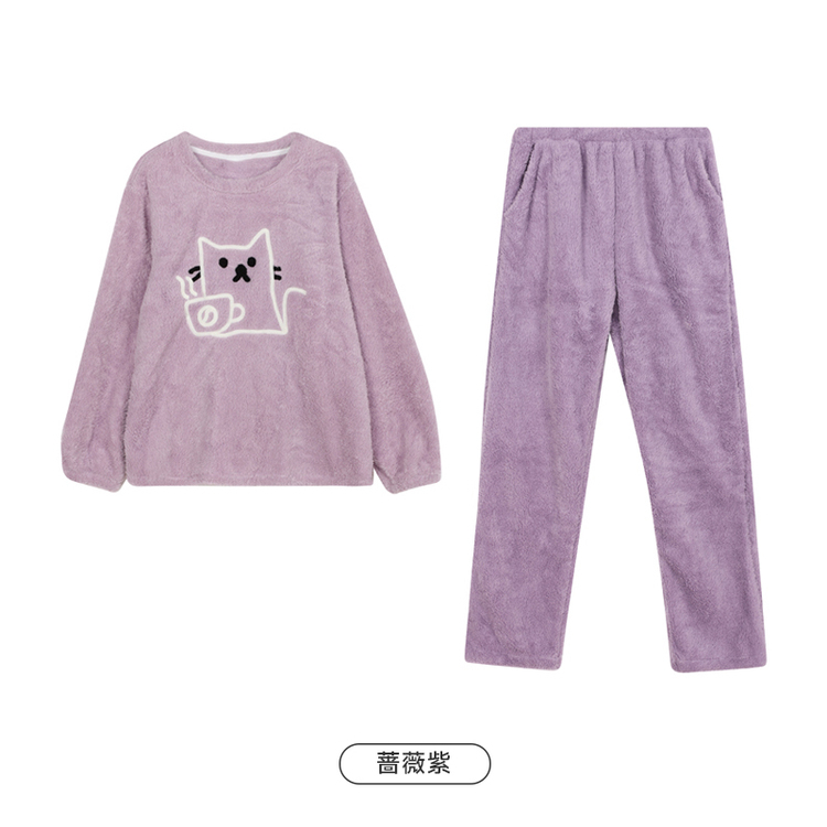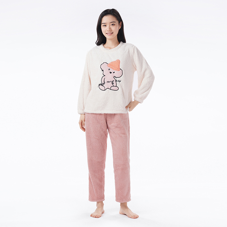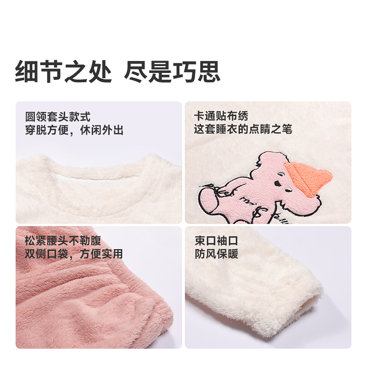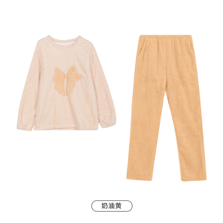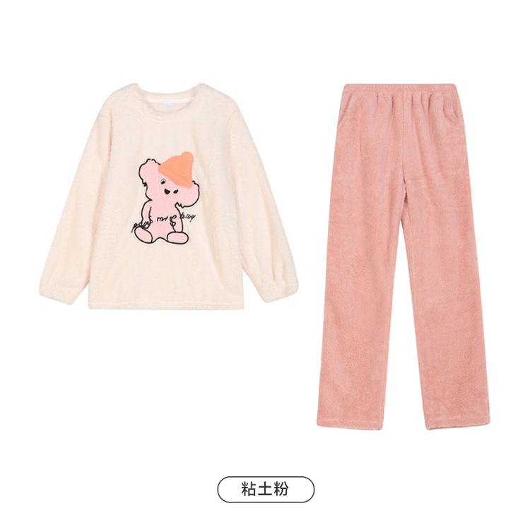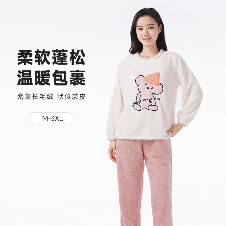 都市丽人睡衣长毛绒睡衣女士家居服长袖长裤法兰绒套装LHH2R2