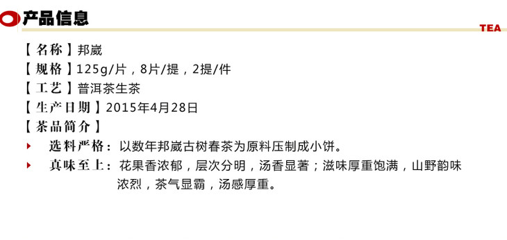 澜沧古茶2015年邦崴小饼普洱茶生茶125g