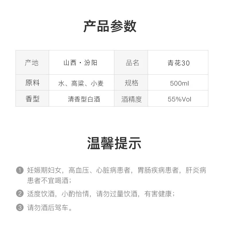 汾阳王青花20 清香型白酒53度 山西名酒 杏花村核心产区 53度 500mL*1瓶