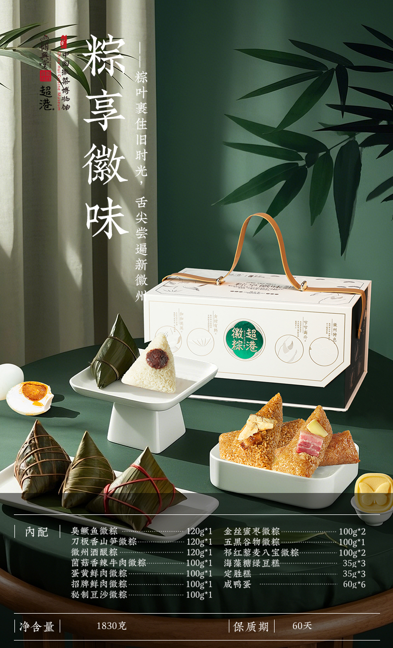 超港 粽享徽味1830g 10味12粽6蛋6糕 胡兴堂端午礼品 粽子礼盒 鸭蛋绿豆糕肉粽 48小时发货