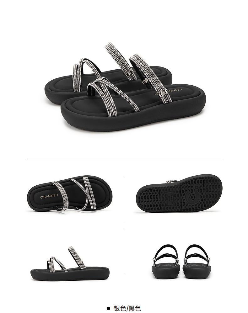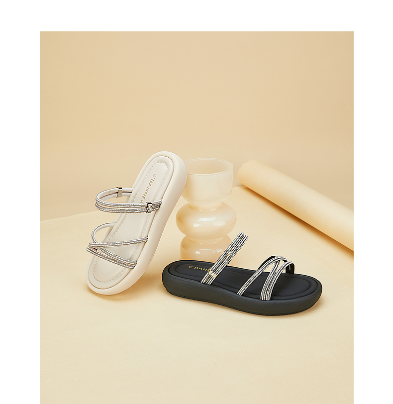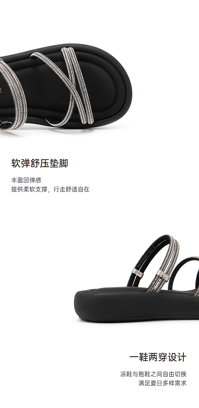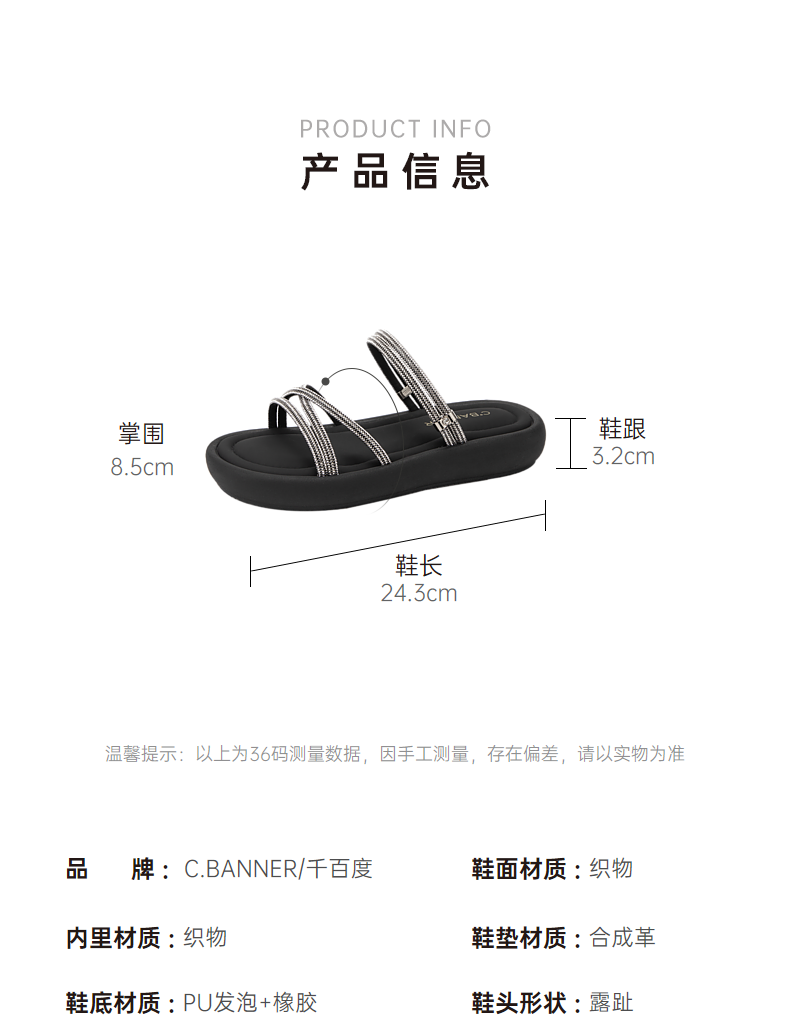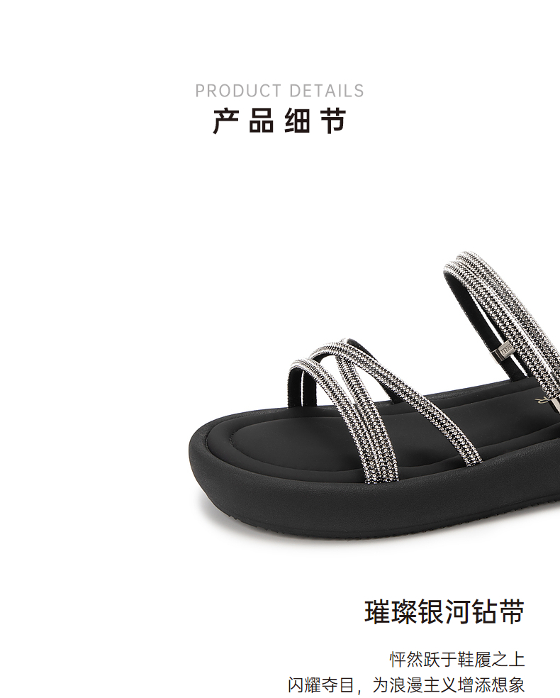 千百度平底绝美凉拖鞋女款夏季拖鞋A24381008