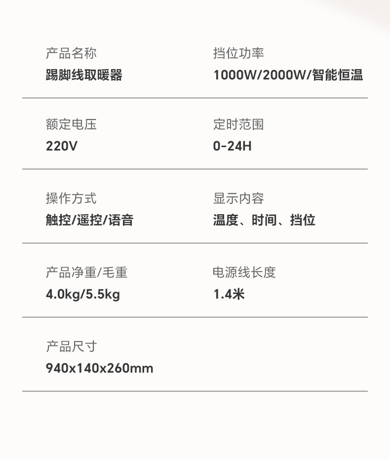 斗禾踢脚线取暖器DH-QND02T