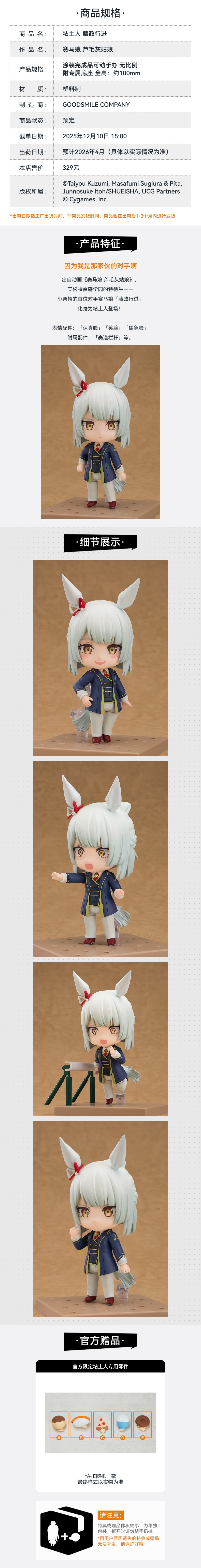 【GSC预售定金】粘土人 藤政行进 赛马娘 芦毛灰姑娘 手办模玩