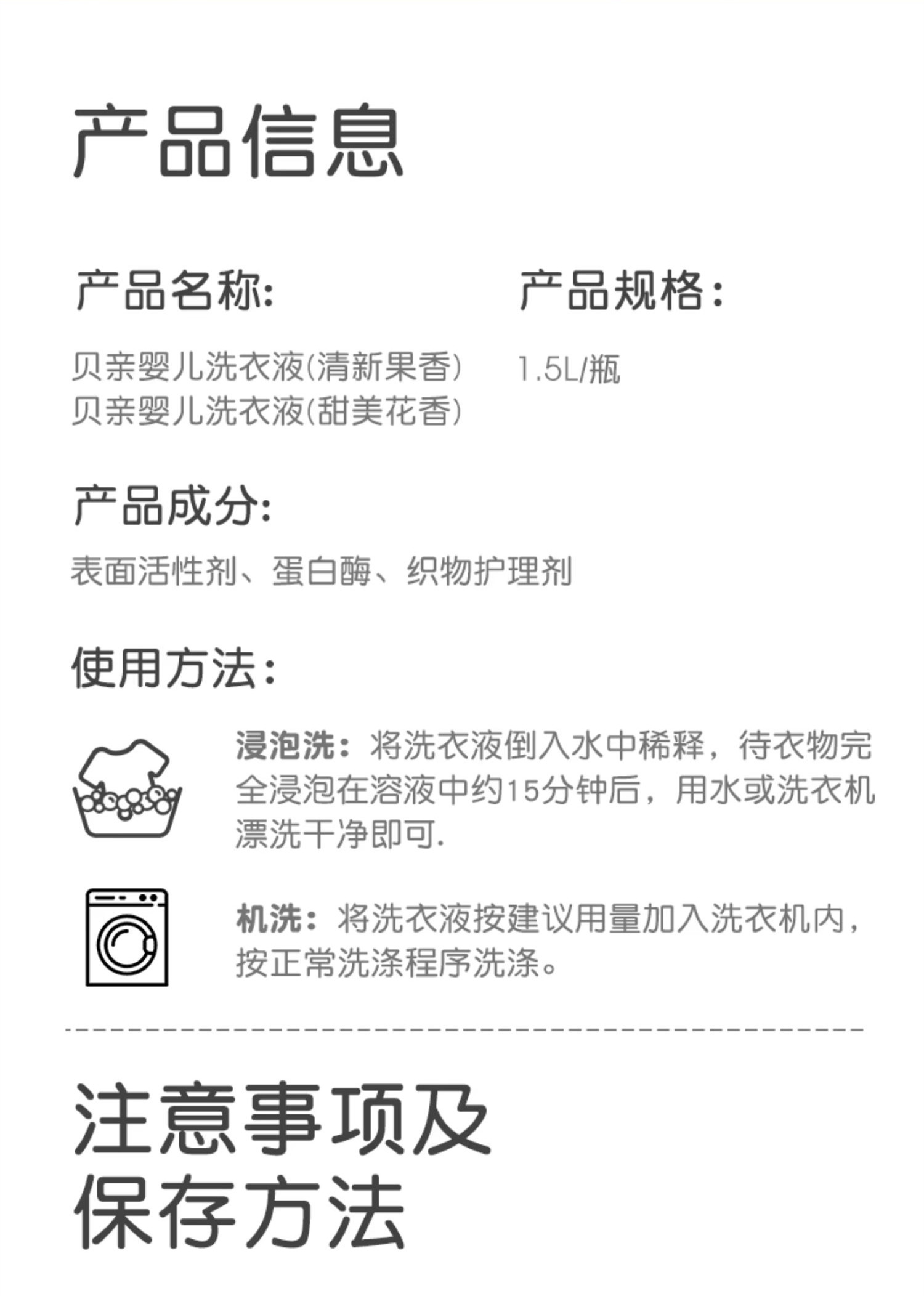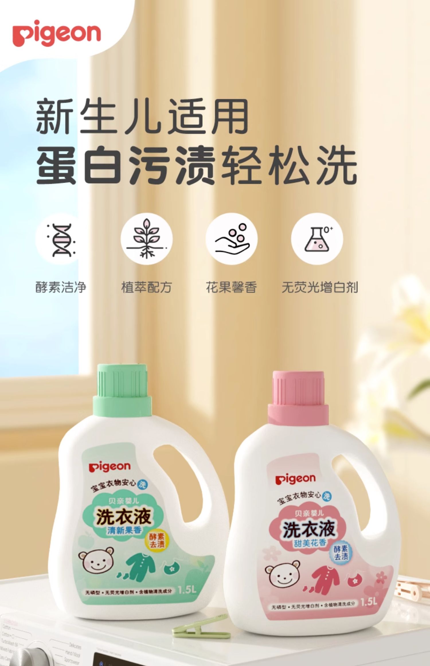 贝亲 婴儿洗衣液 酵素洗衣液宝宝新生儿皂液清洗剂1.5L