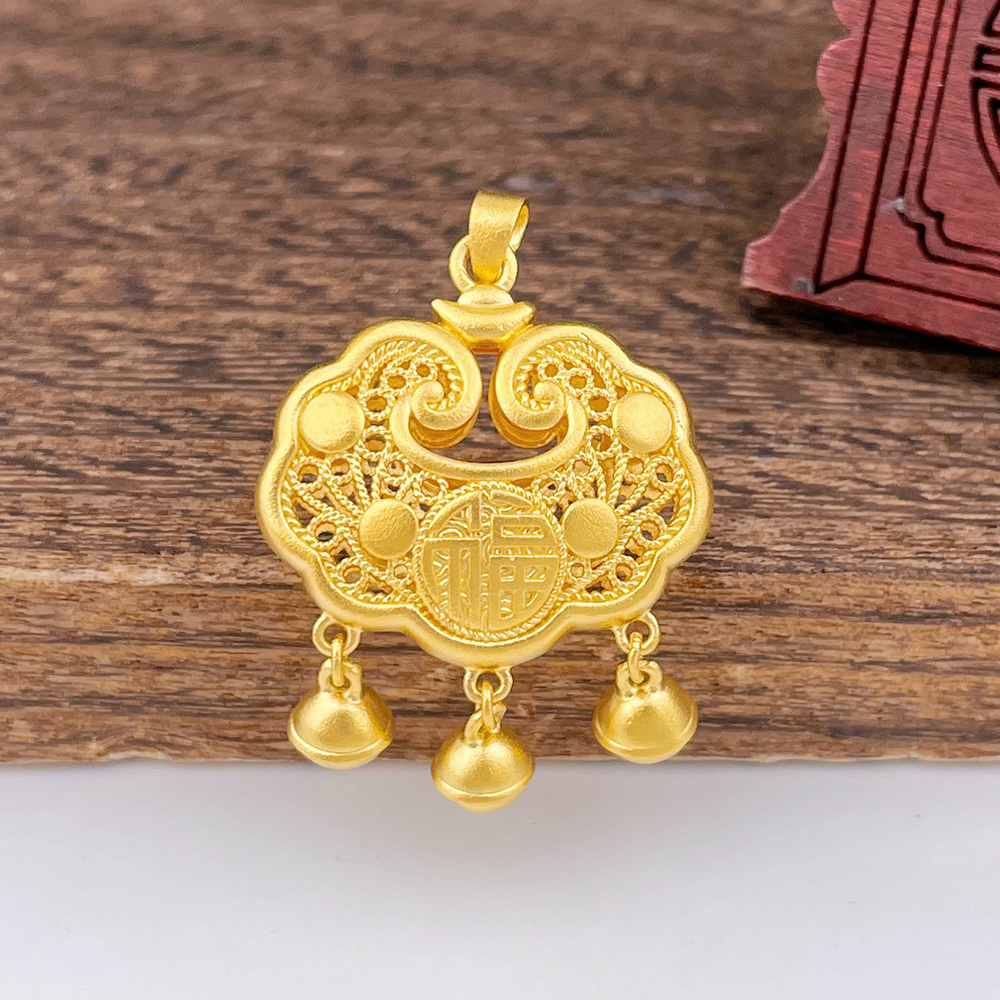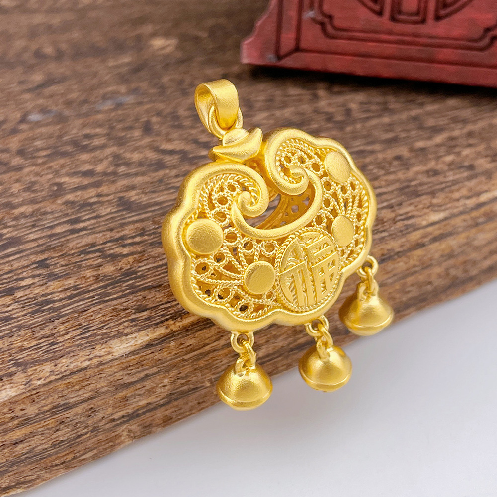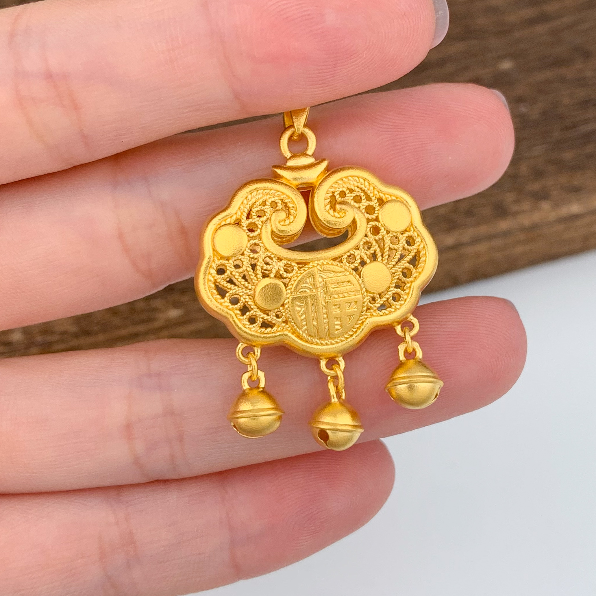 【限时克减150元】足金999.9 古法双面镂空福字铃铛如意福字锁包吊坠网红锁包(ANWZGFDZ00310-4)(预售产品下单后不退款不退货不换货不补差价)