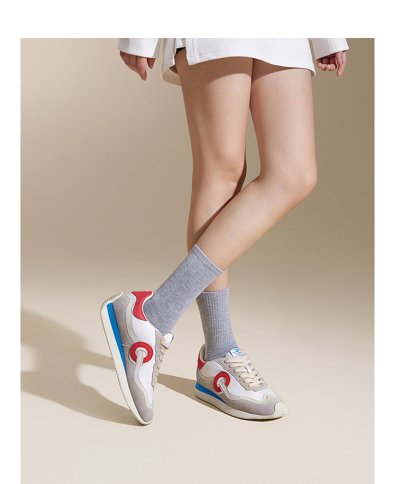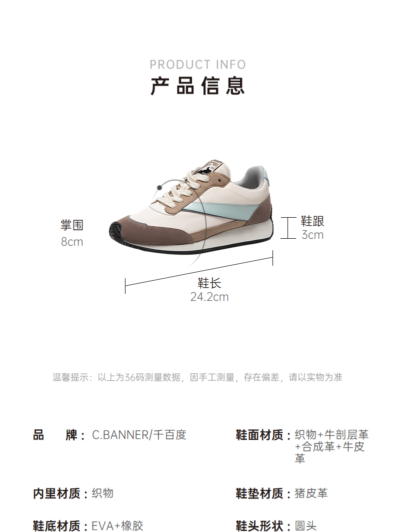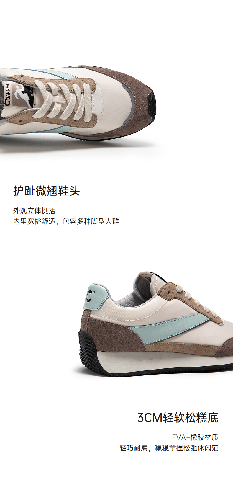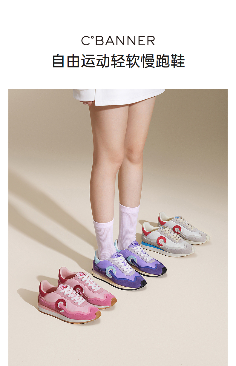 千百度薄底德训鞋女款复古多巴胺透气时尚运动休闲鞋A25457801