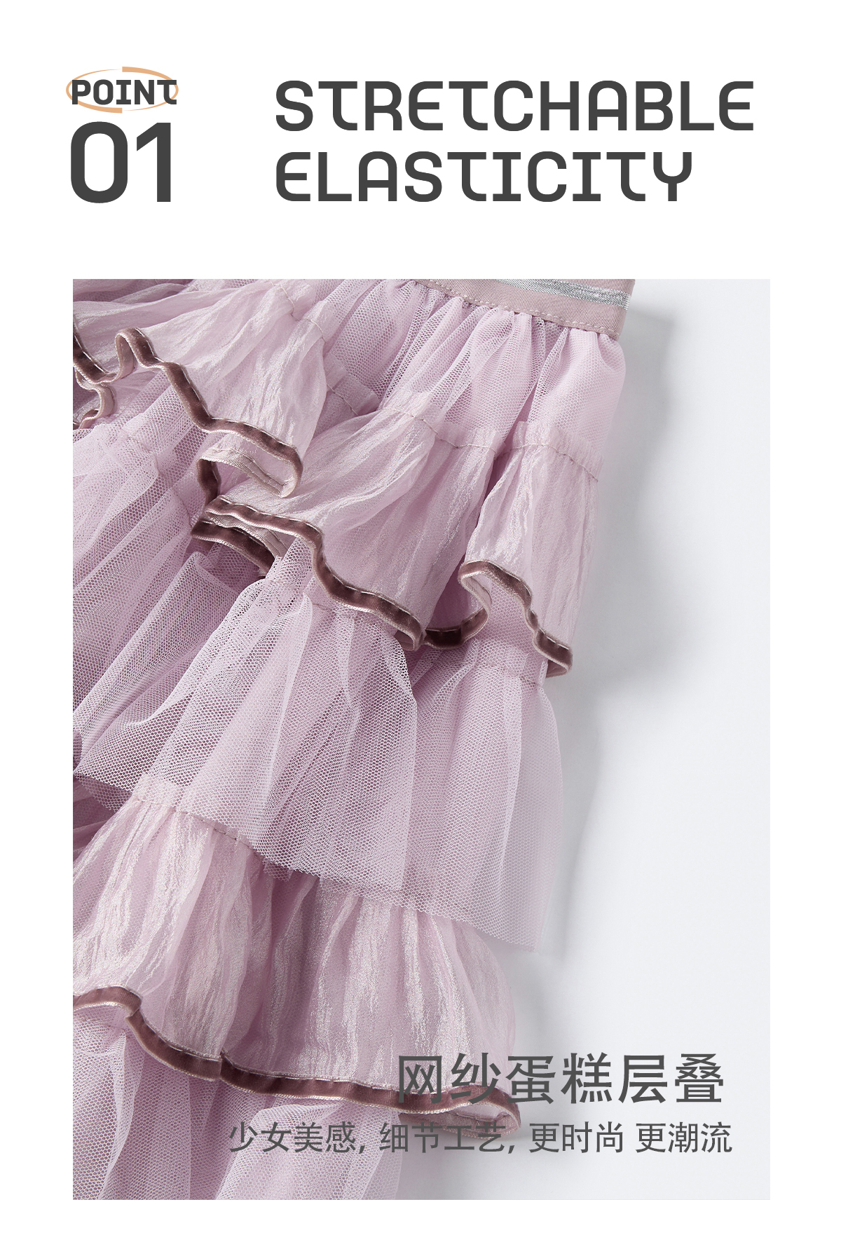 Littletime女童半身裙夏装2025新款儿童网纱公主裙蓬蓬裙中长半裙