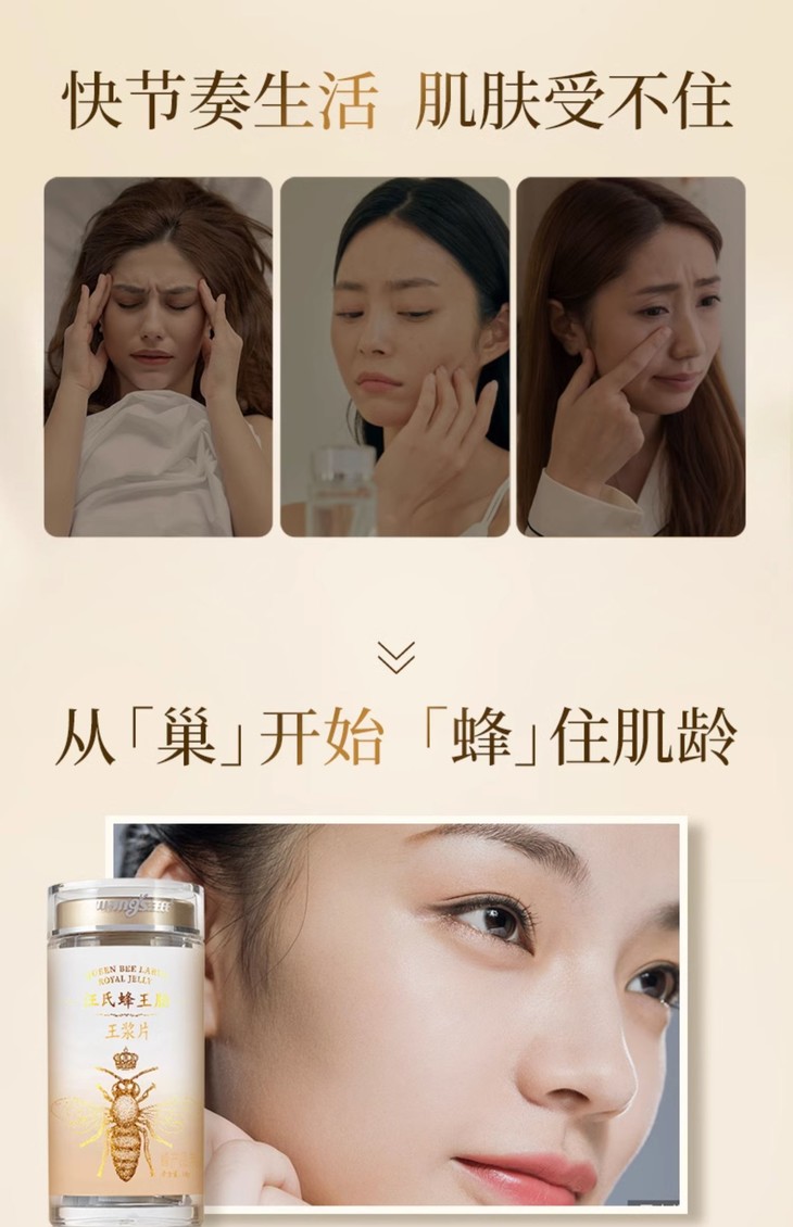 【尊享5盒装|买5月送45天】汪氏甄品蜂皇浆王浆酸含量≥2.2% 300g*5(送15g王浆片3盒,到手6个月量)