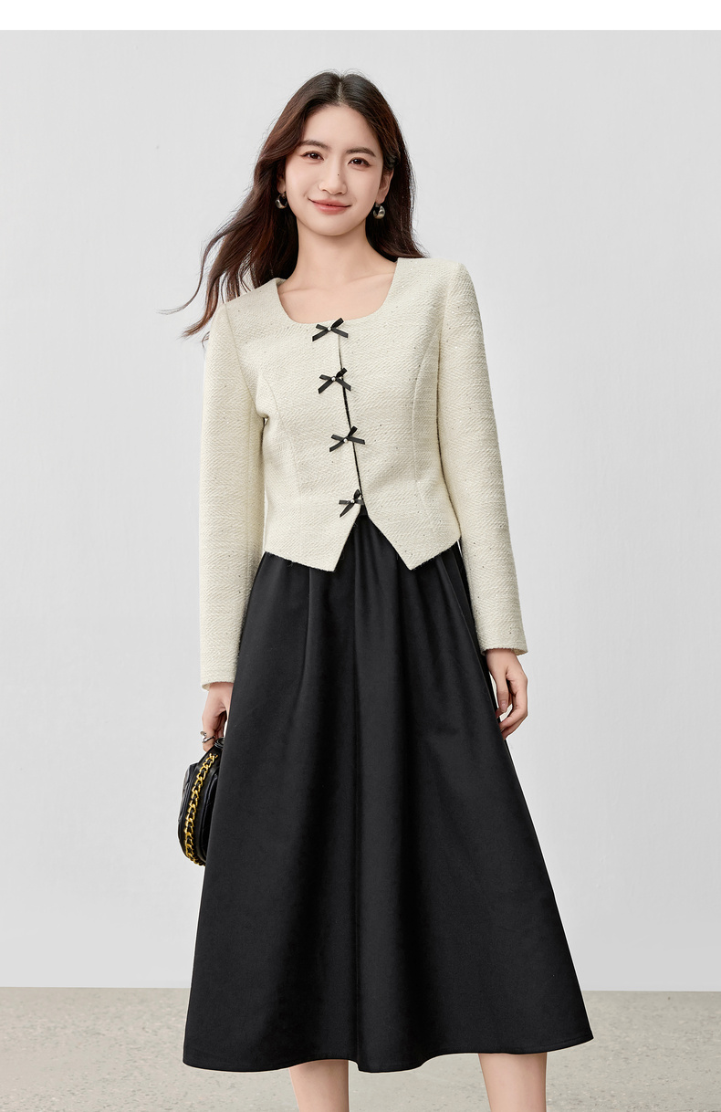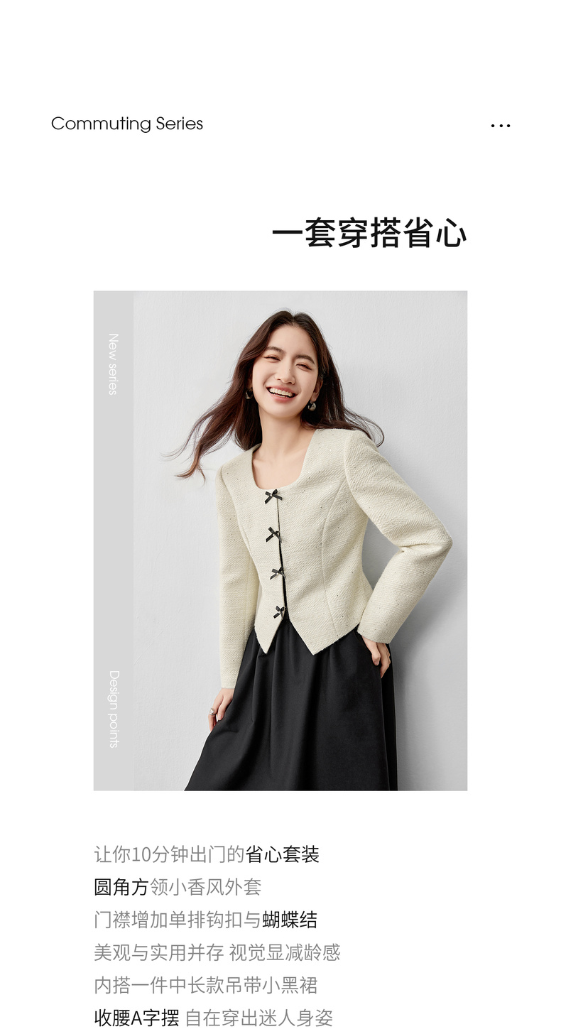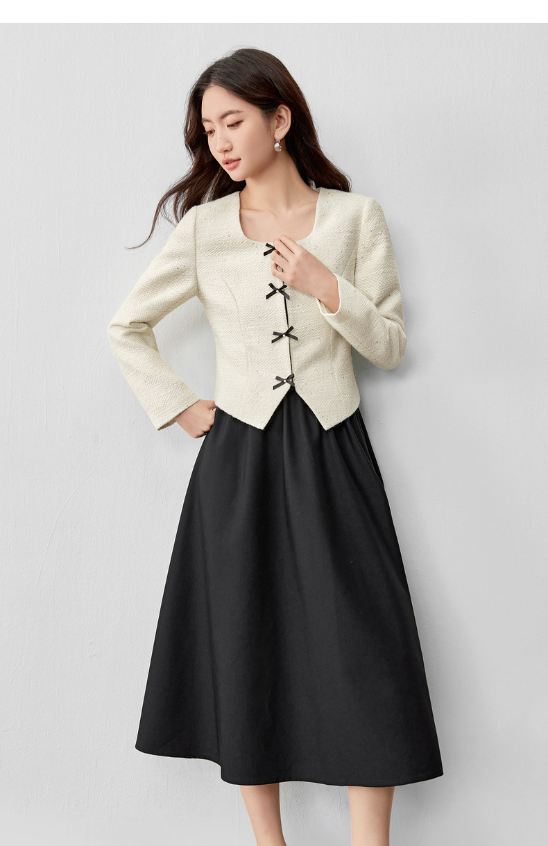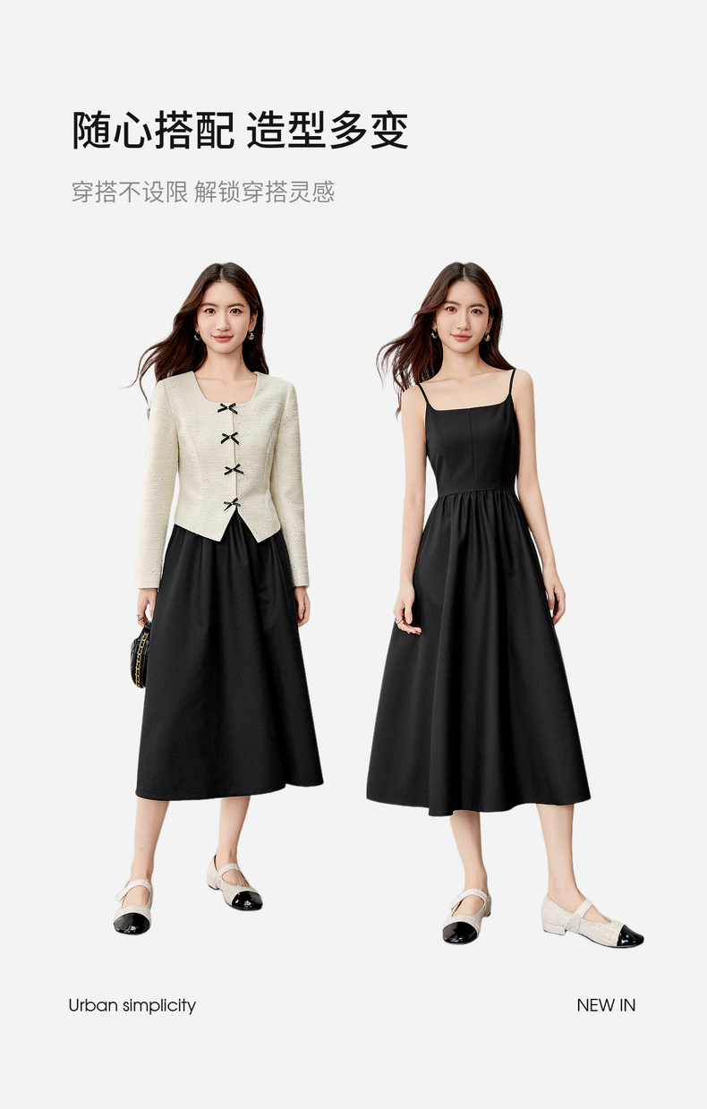 【内购】【免搭配套装】优雅通勤翻领小香风厚外套&显瘦收腰A字吊带连衣裙-153ZA2418