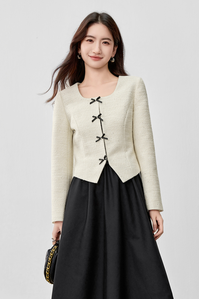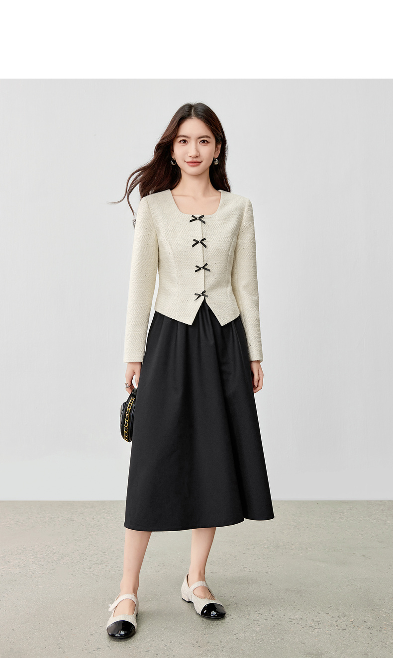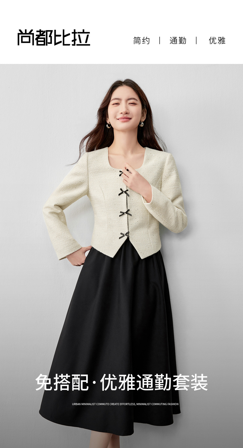 【内购】【免搭配套装】优雅通勤翻领小香风厚外套&显瘦收腰A字吊带连衣裙-153ZA2418