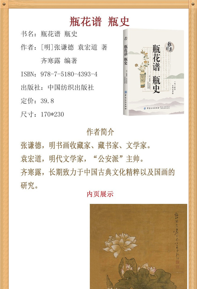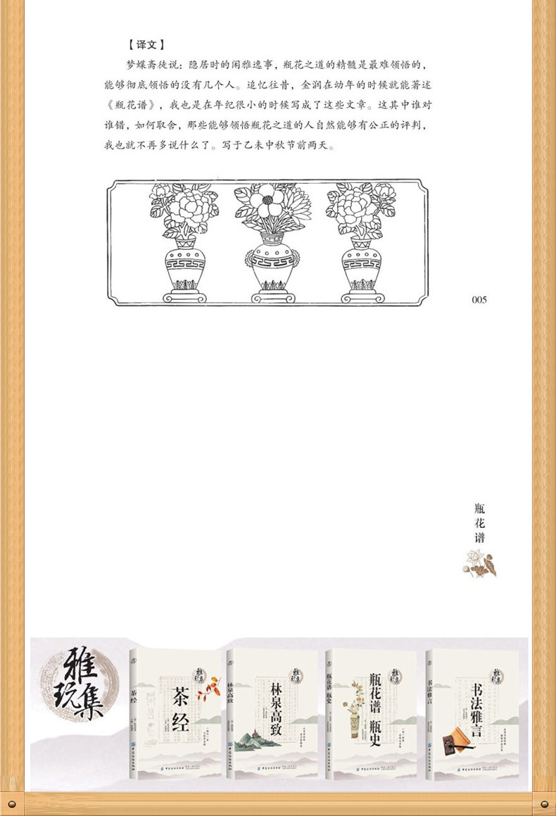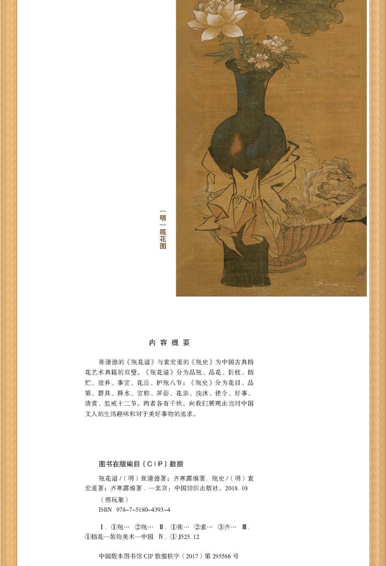 瓶花谱瓶史/雅玩集 袁宏道张德谦作品 闲玩雅赏清修古代瓶器皿瓶花谱史赏析 传统文化给你插花设计的灵感 古代艺术设计历史书籍