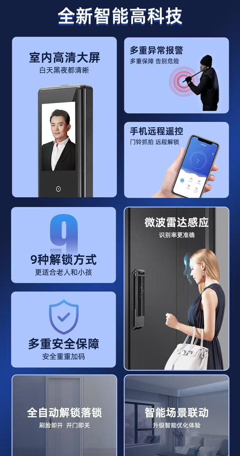 【萨莱明】智能锁_密码·指纹·卡片·人脸·手机·钥匙6种开锁方式_R39D【佛山】【存量】