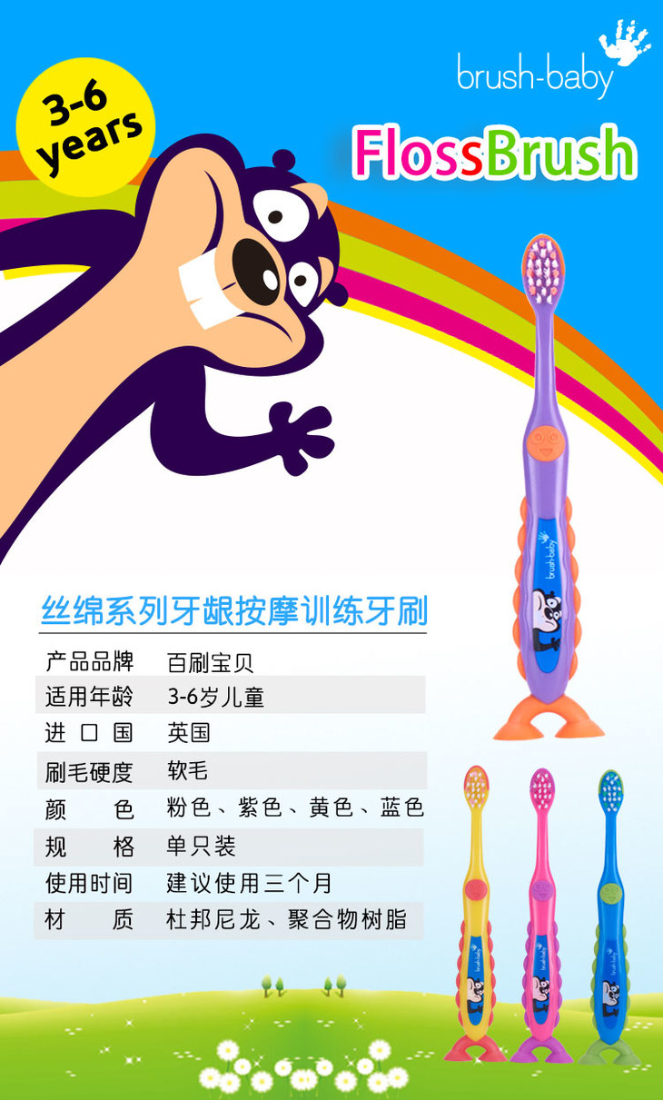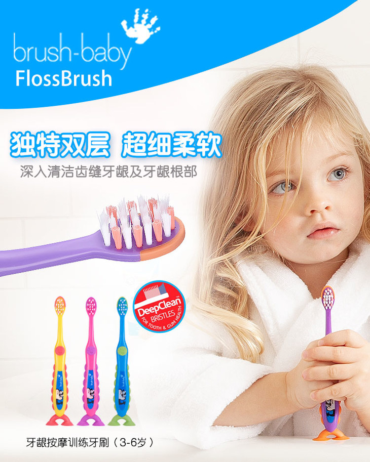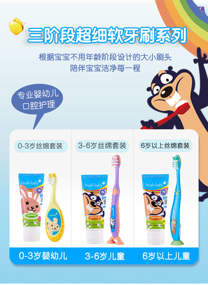 brush-baby百刷宝贝超细刷毛牙刷适用于3-6岁2支装