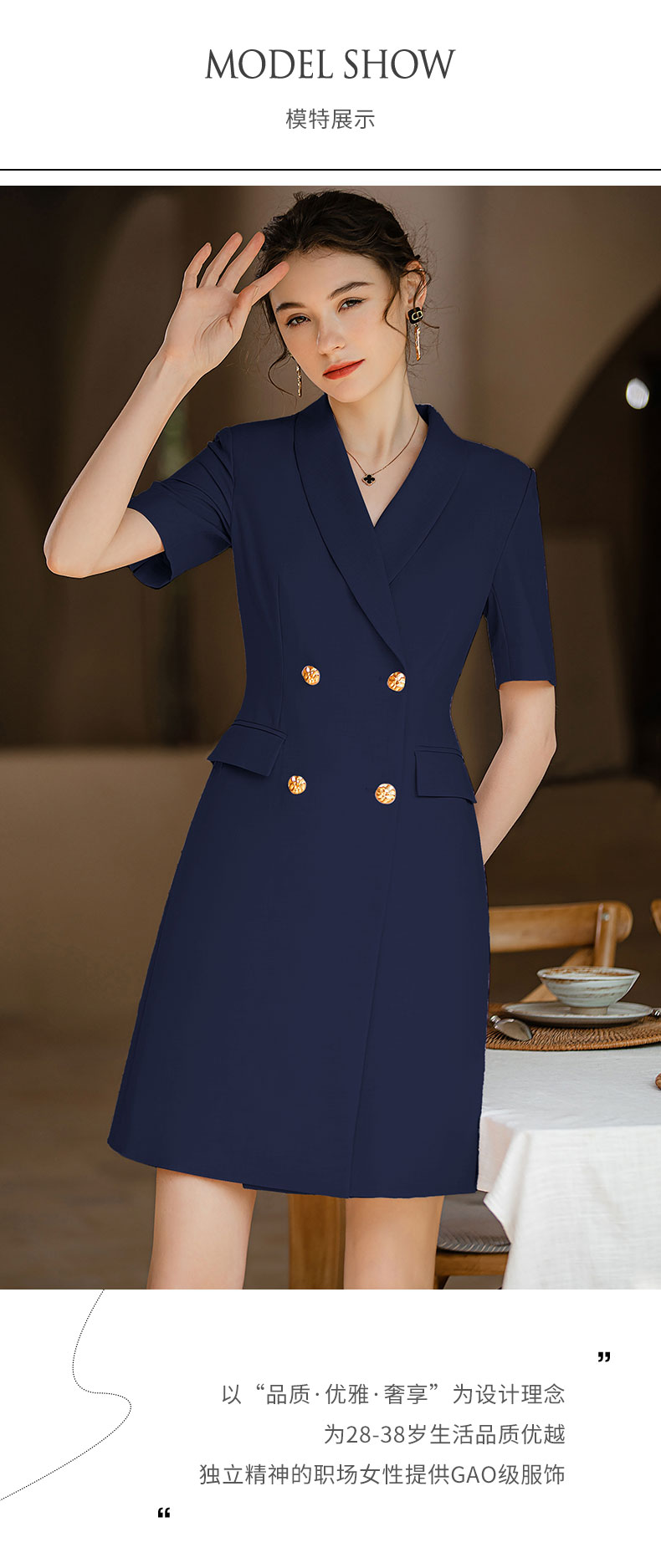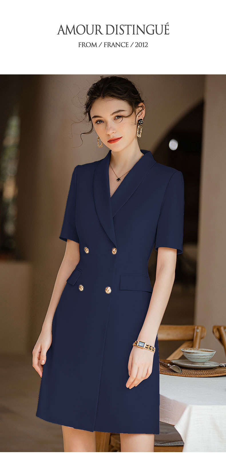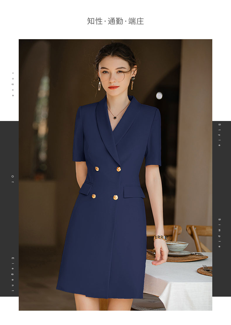 IWY/藏蓝色时尚连衣裙职业西装裙双排扣商务风通勤收腰设计显瘦Q920-ZL