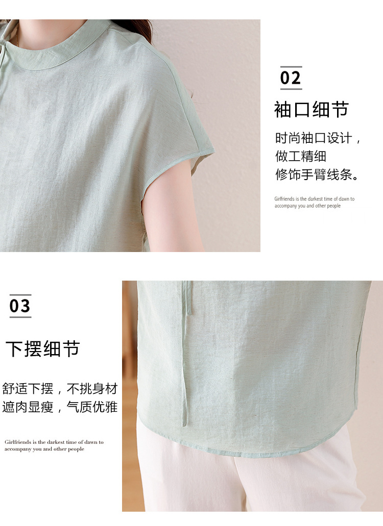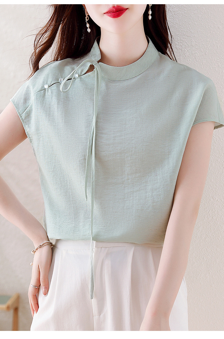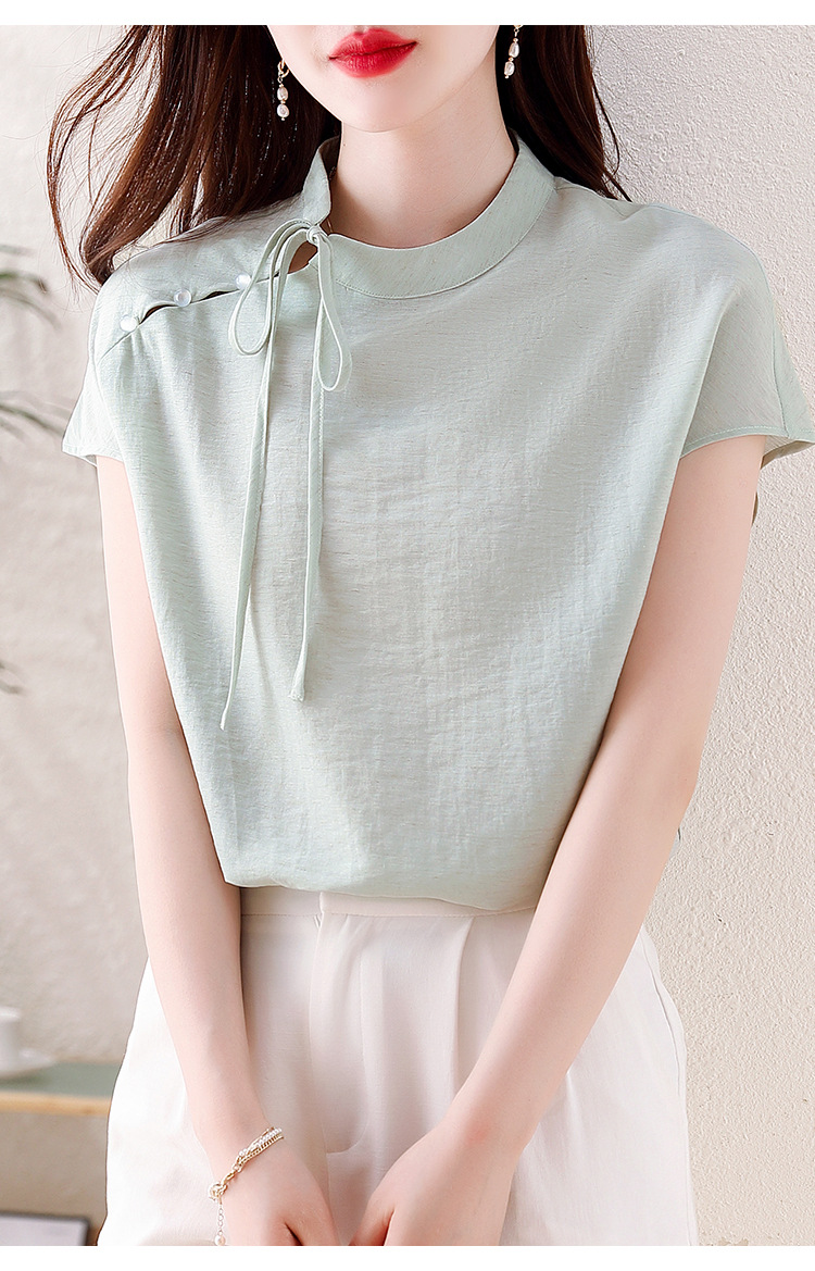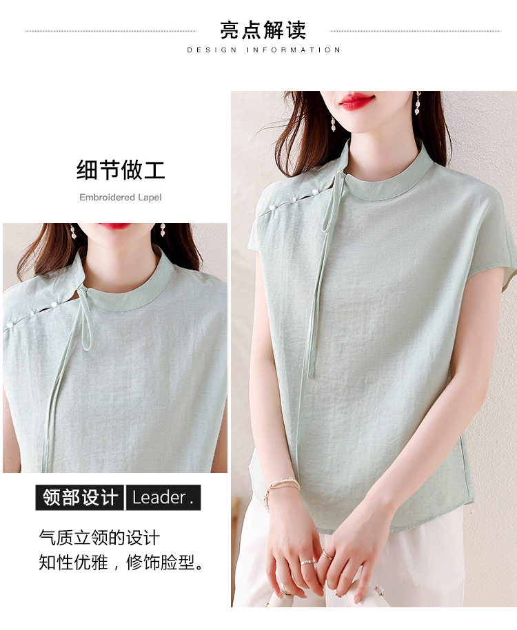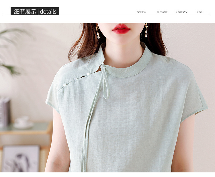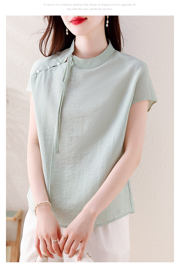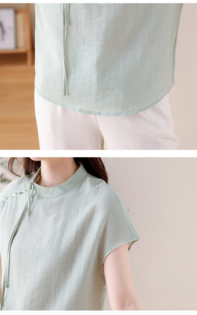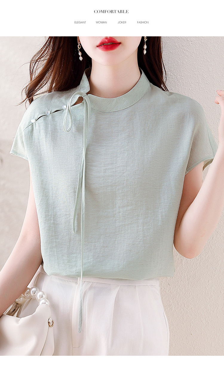 薄荷曼波新中式,亚麻短袖衬衫KQL-A77N8761