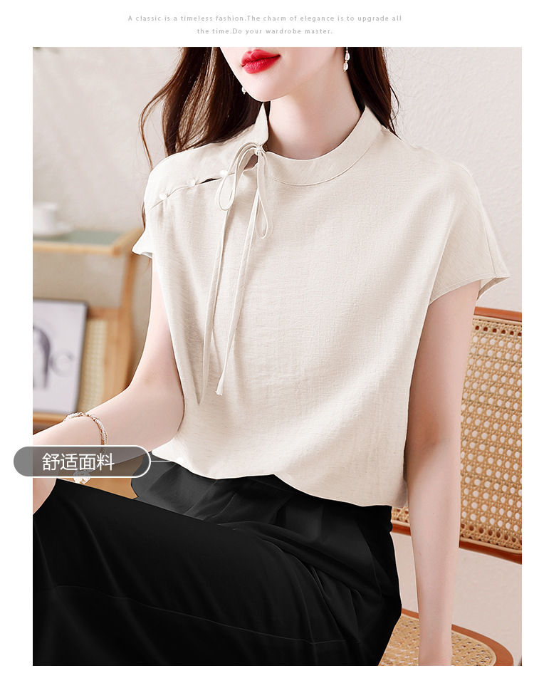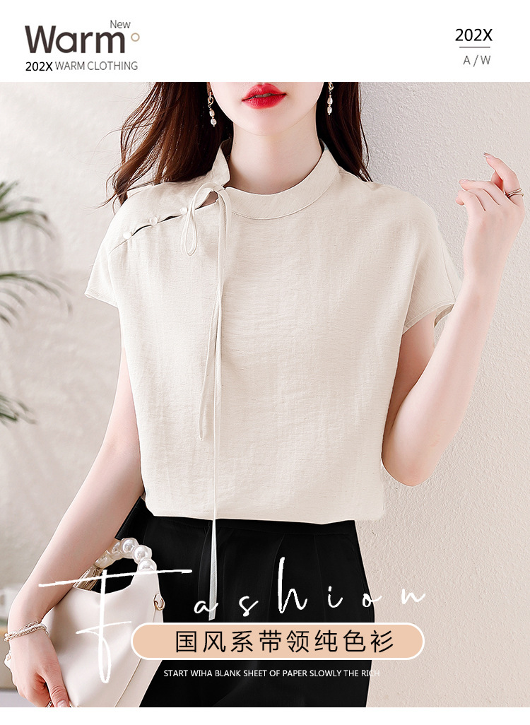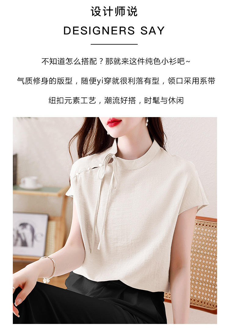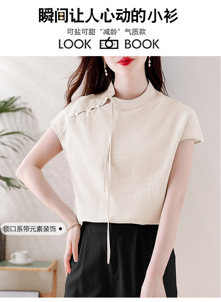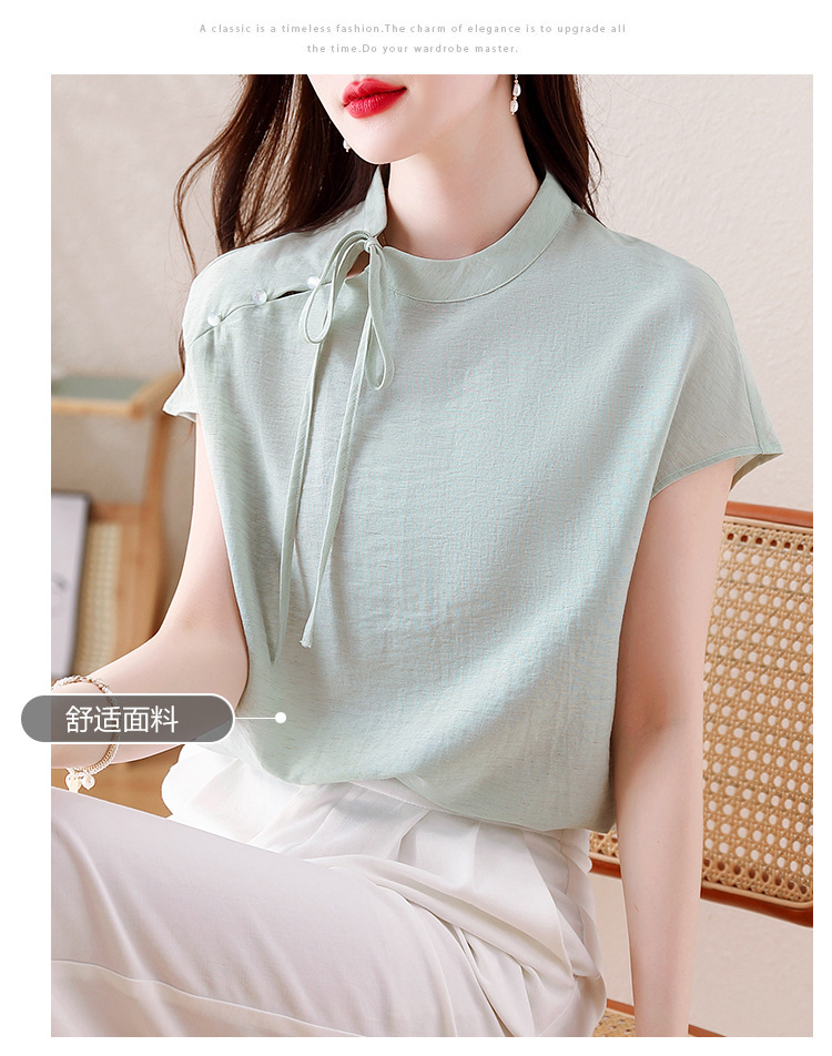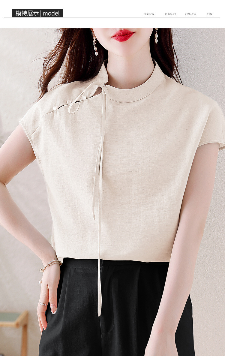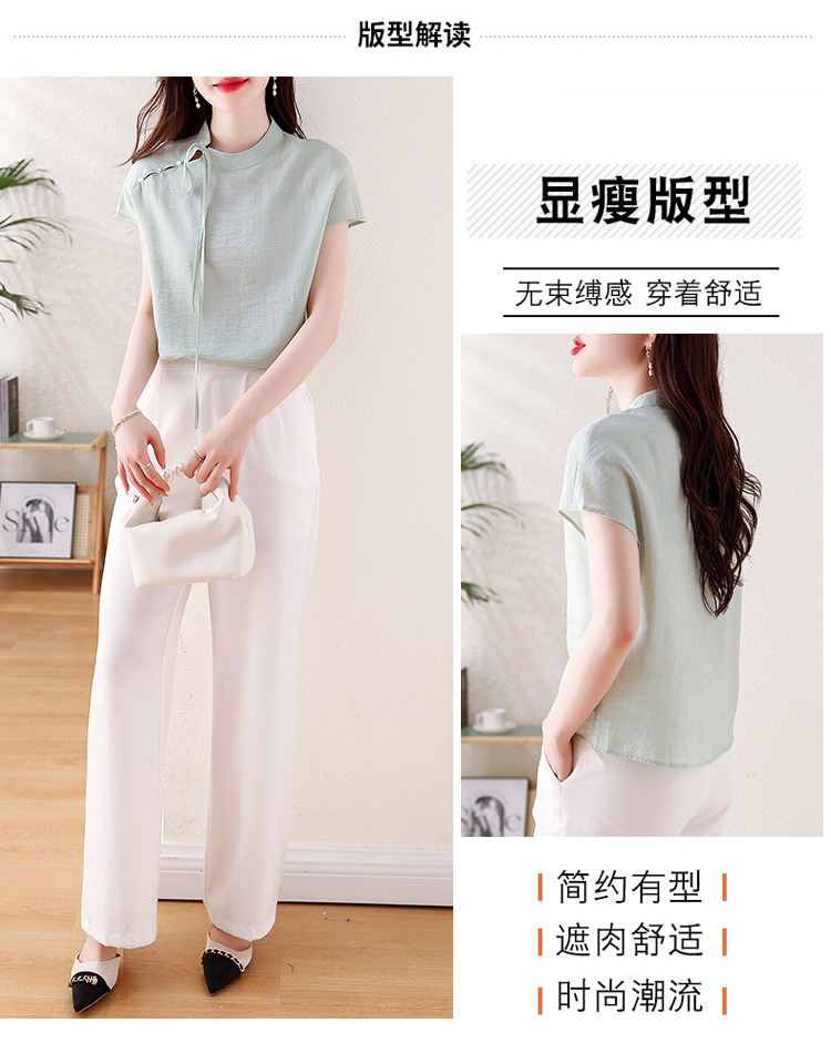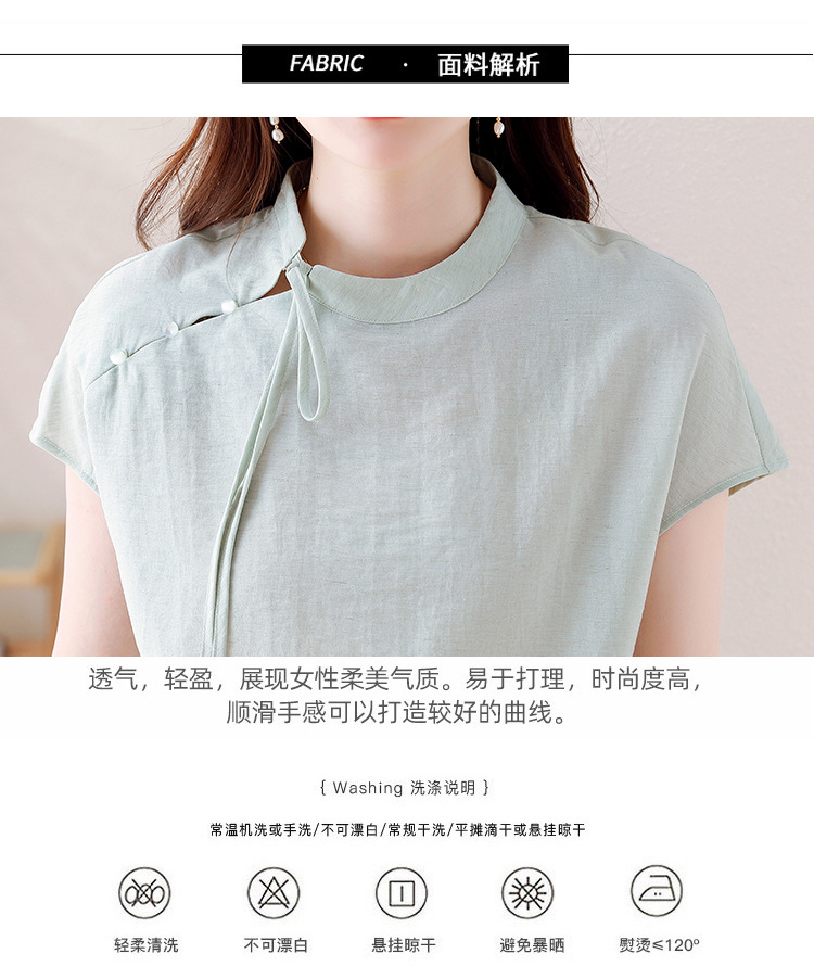 薄荷曼波新中式,亚麻短袖衬衫KQL-A77N8761