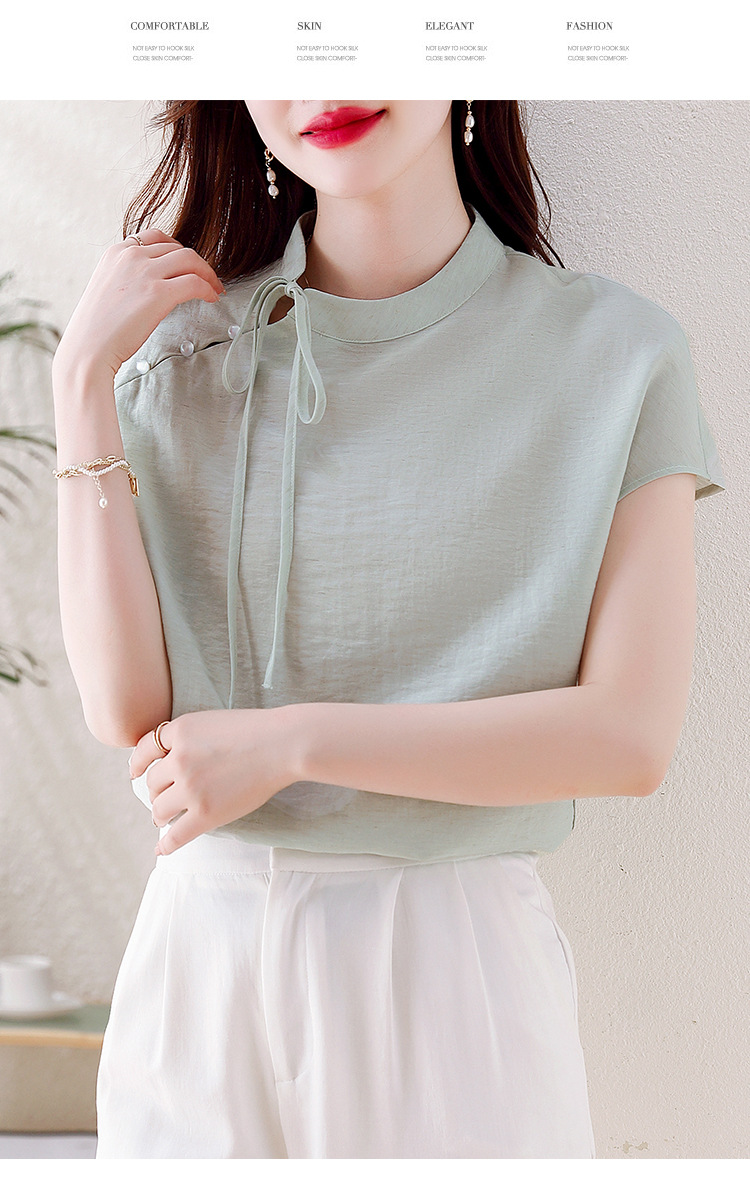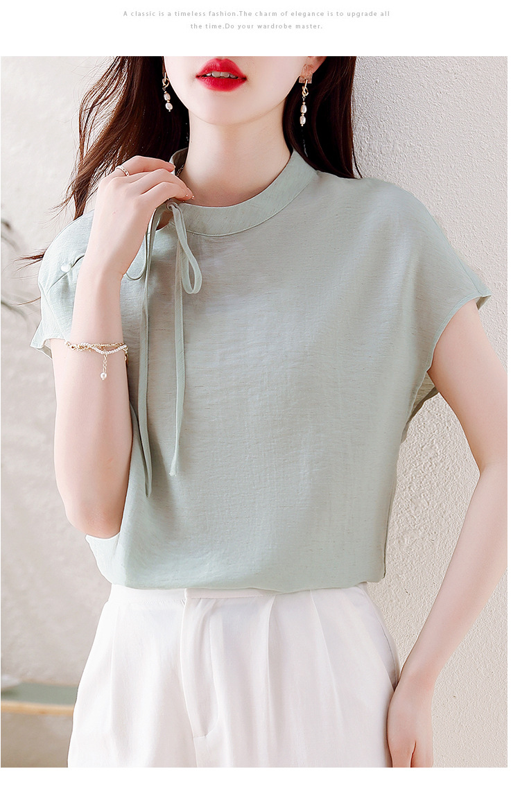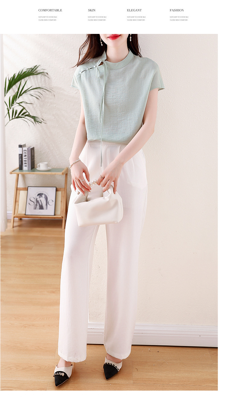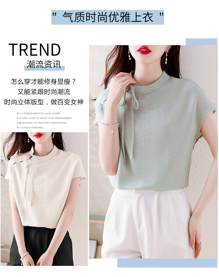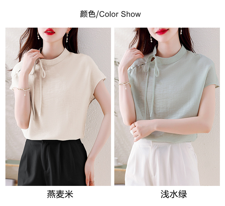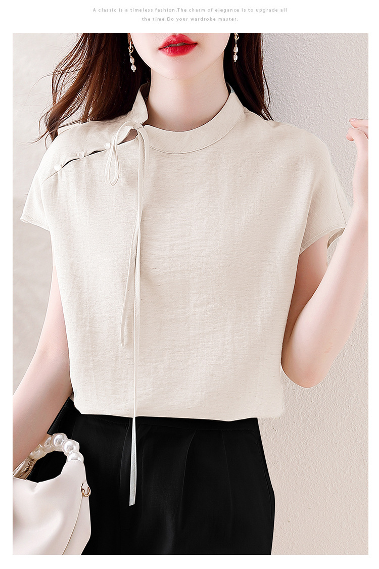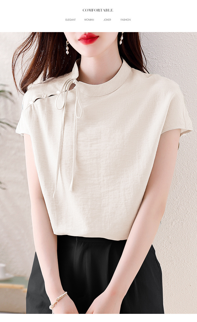 薄荷曼波新中式,亚麻短袖衬衫KQL-A77N8761
