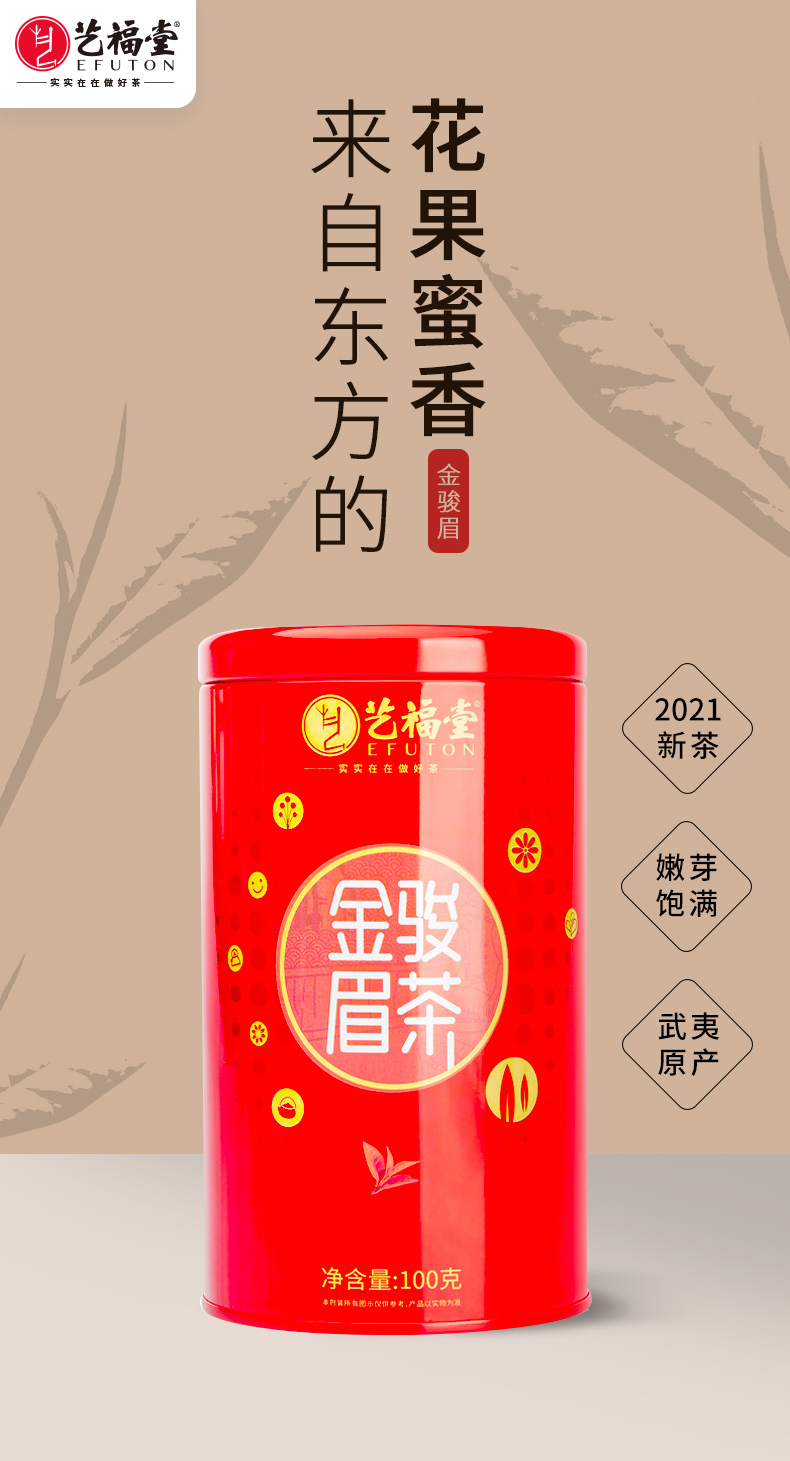 艺福堂 特级金骏眉红茶 武夷山桐木关原产 100g/罐
