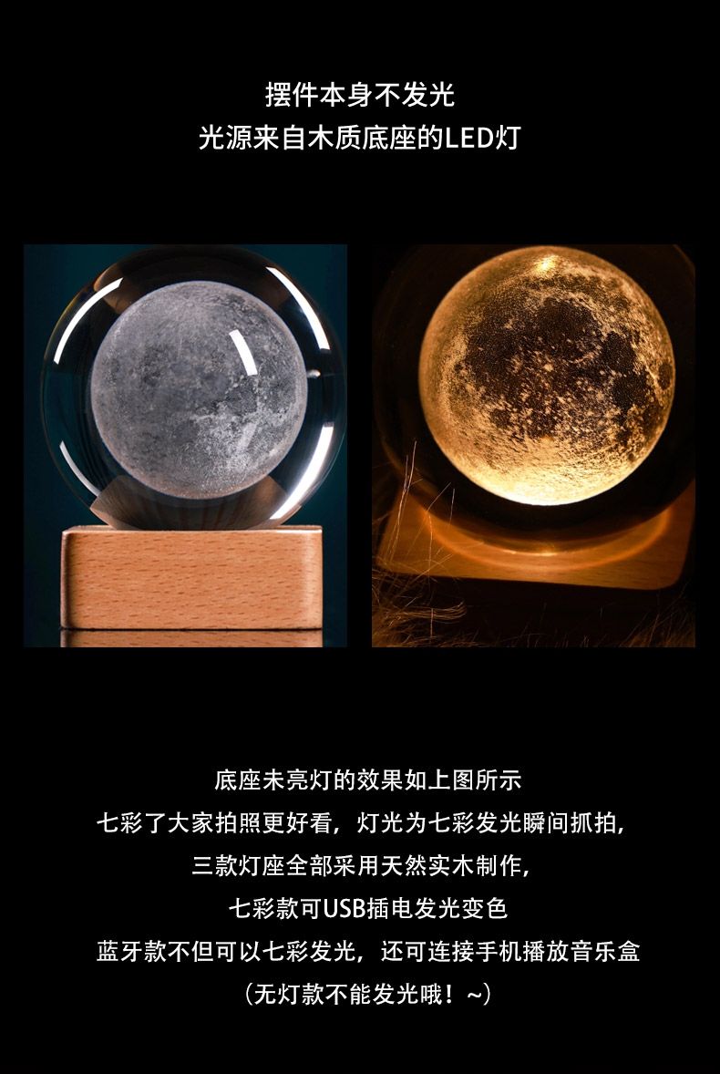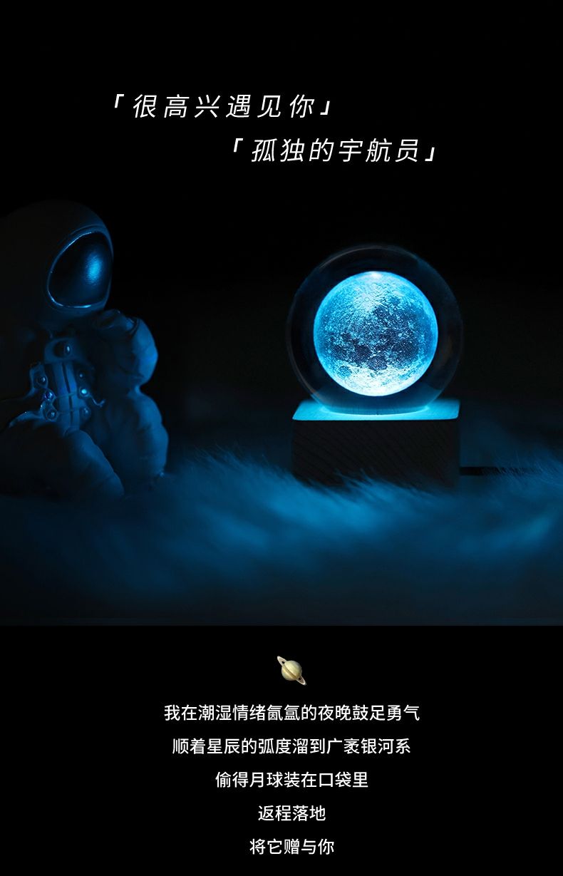 【身临其境去感受璀璨宇宙】生日礼物蓝牙音箱小夜灯,内雕星空球系列,月球太阳银河摆件送男生女朋友同学