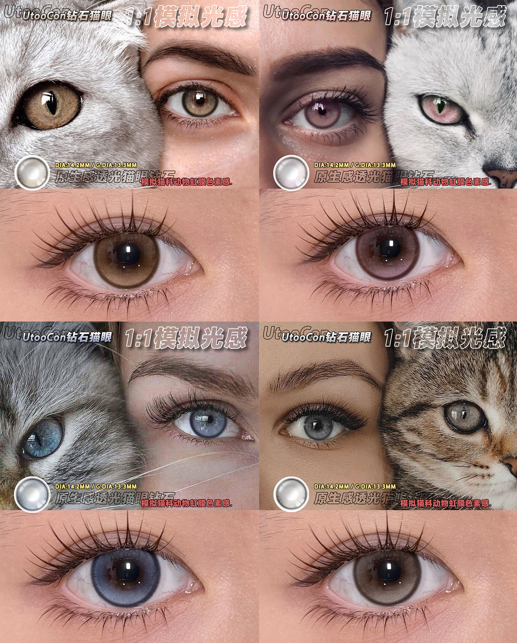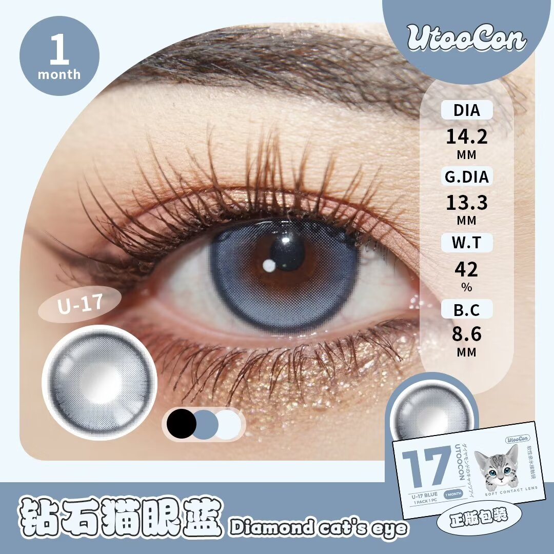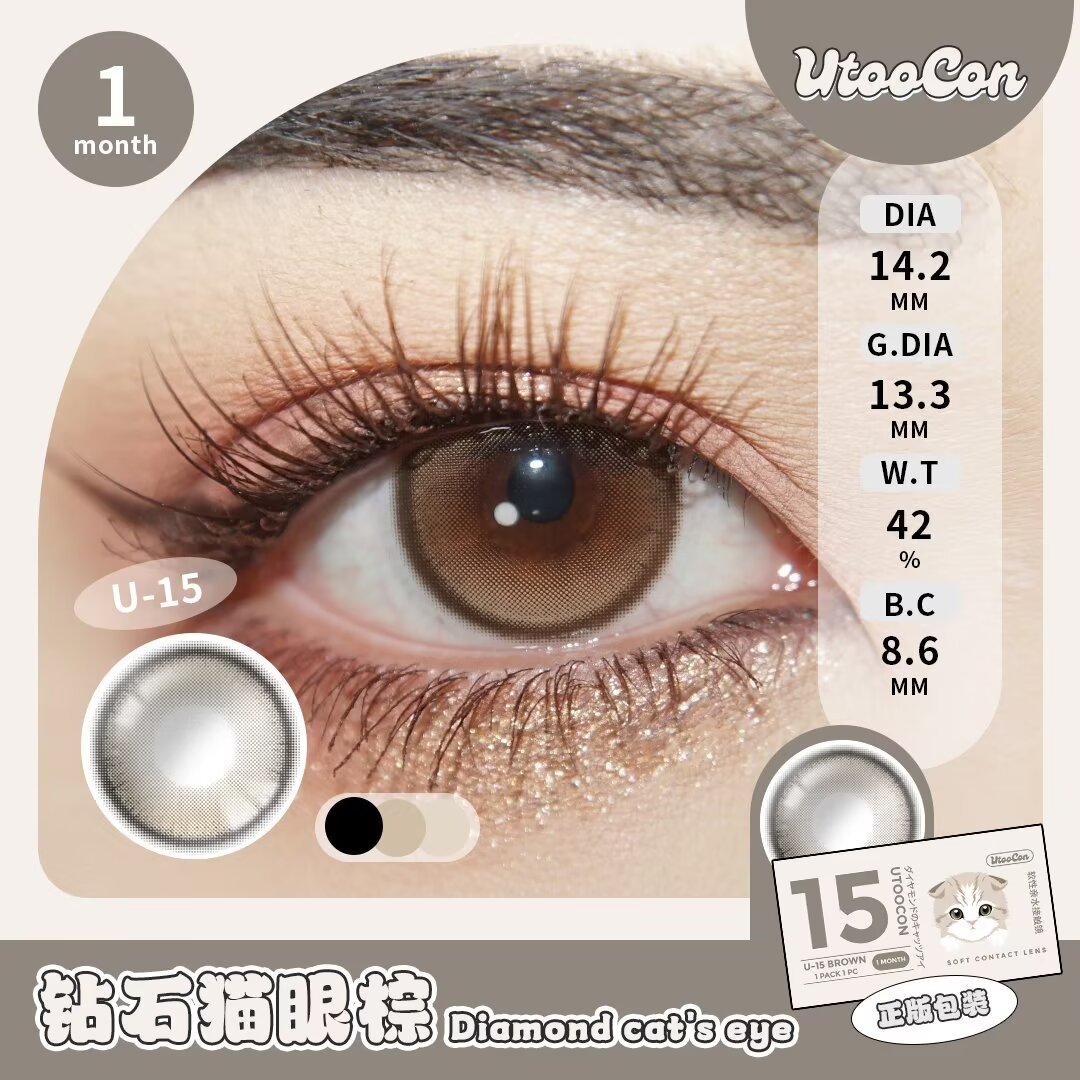 utoocon 钻石猫眼系列 棕/灰/蓝/粉 14.2mm 月抛 非离子