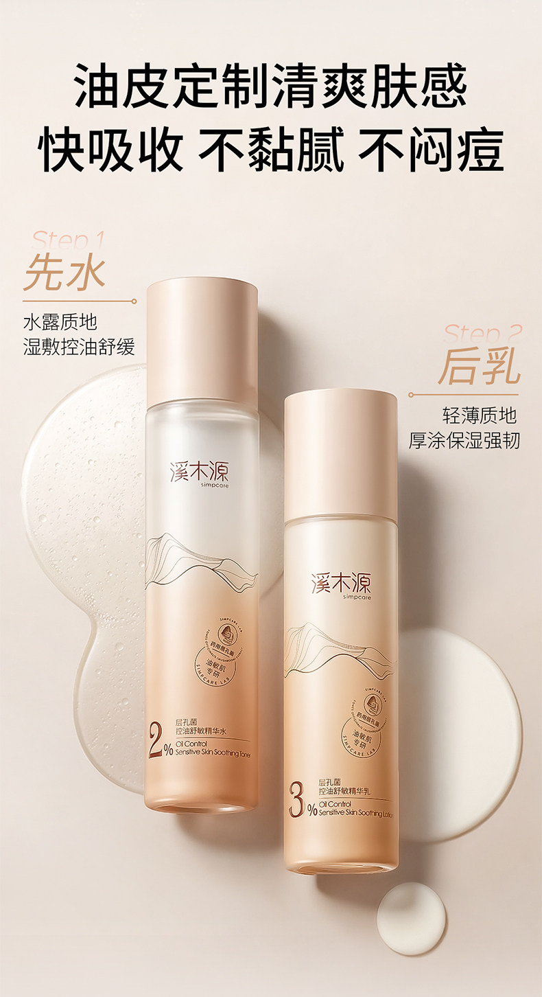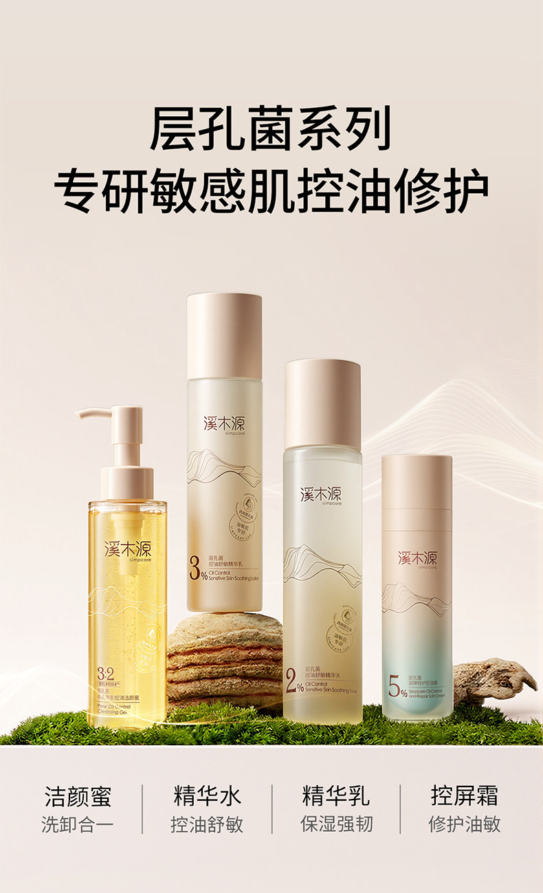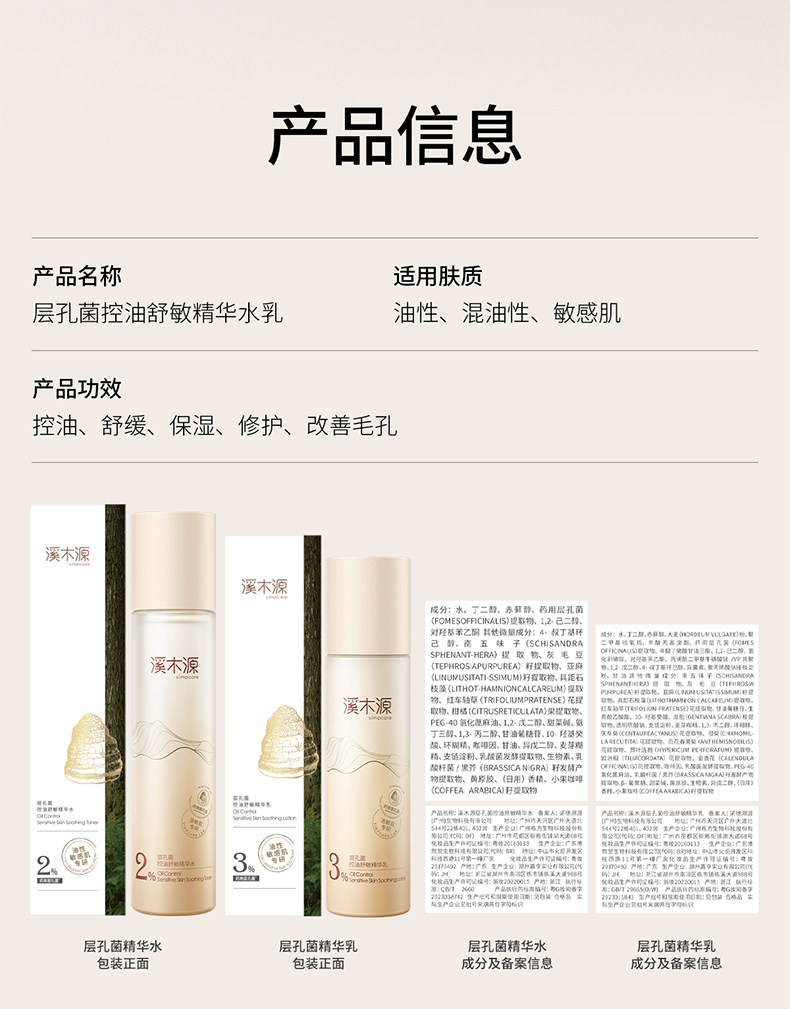 溪木源层孔菌水乳套装 油皮敏感肌控油保湿秋冬护肤品