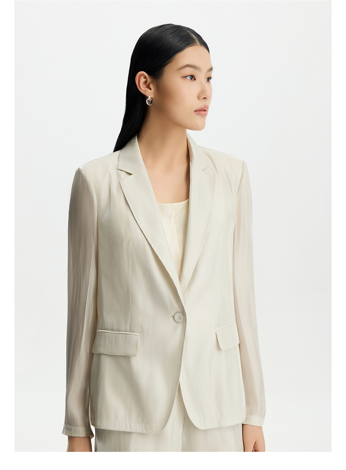 商场同款PURE TOUCH 26春夏新款水银纱西装外套微收腰珠光西服女
