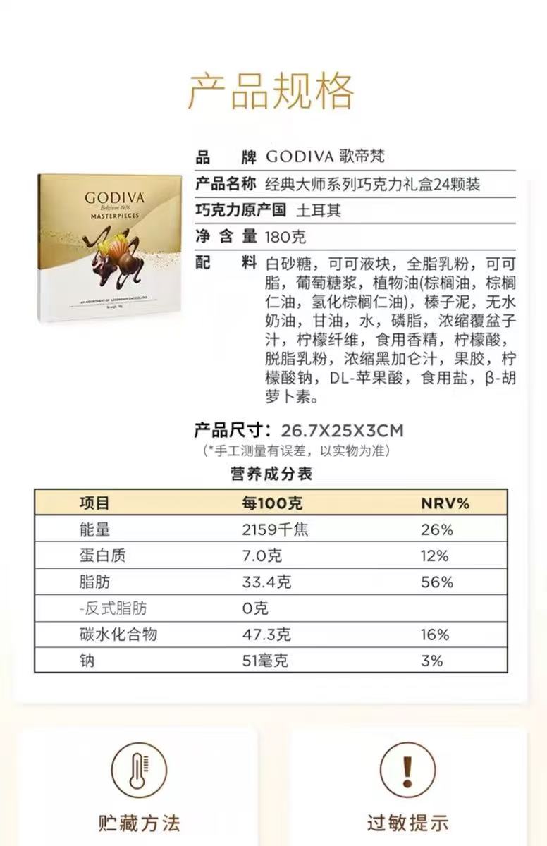 歌帝梵经典大师系列巧克力礼盒 24颗装 180g