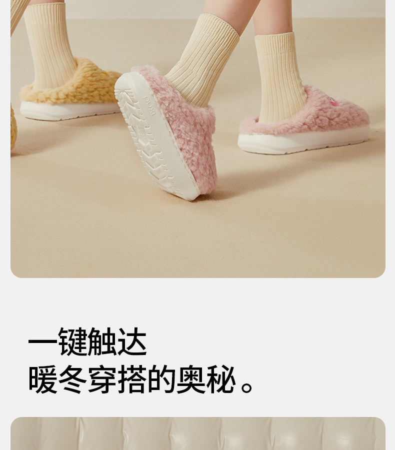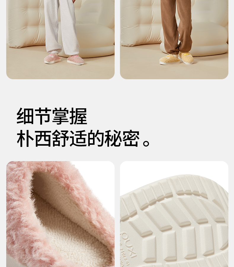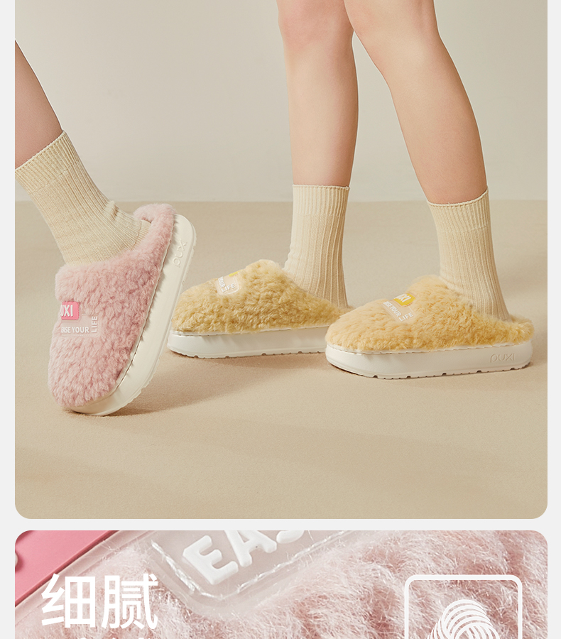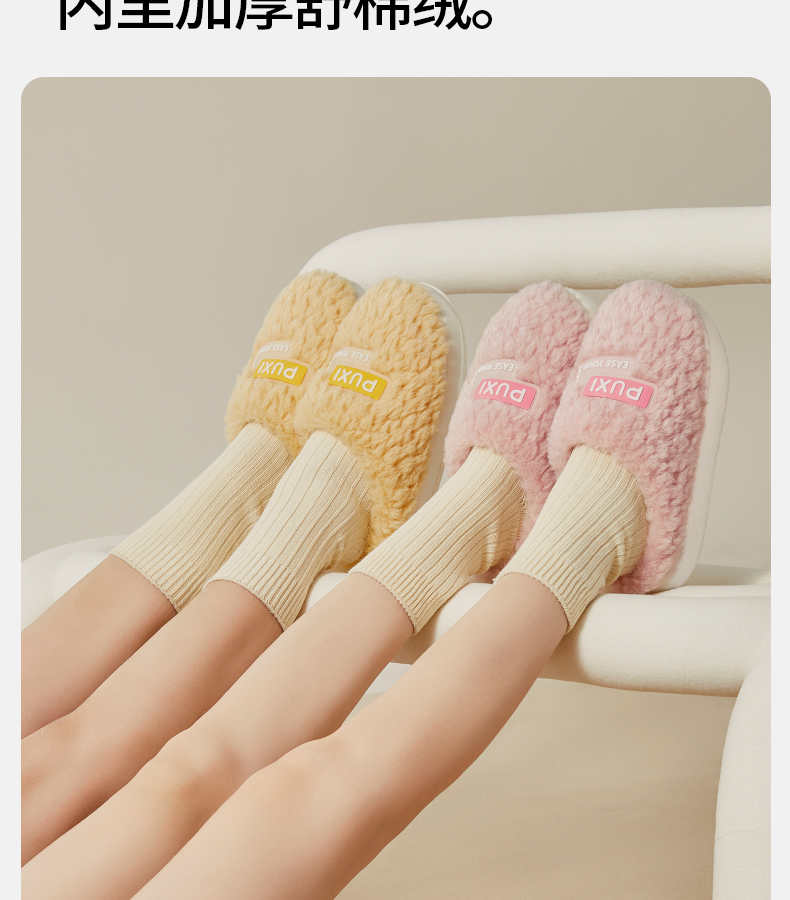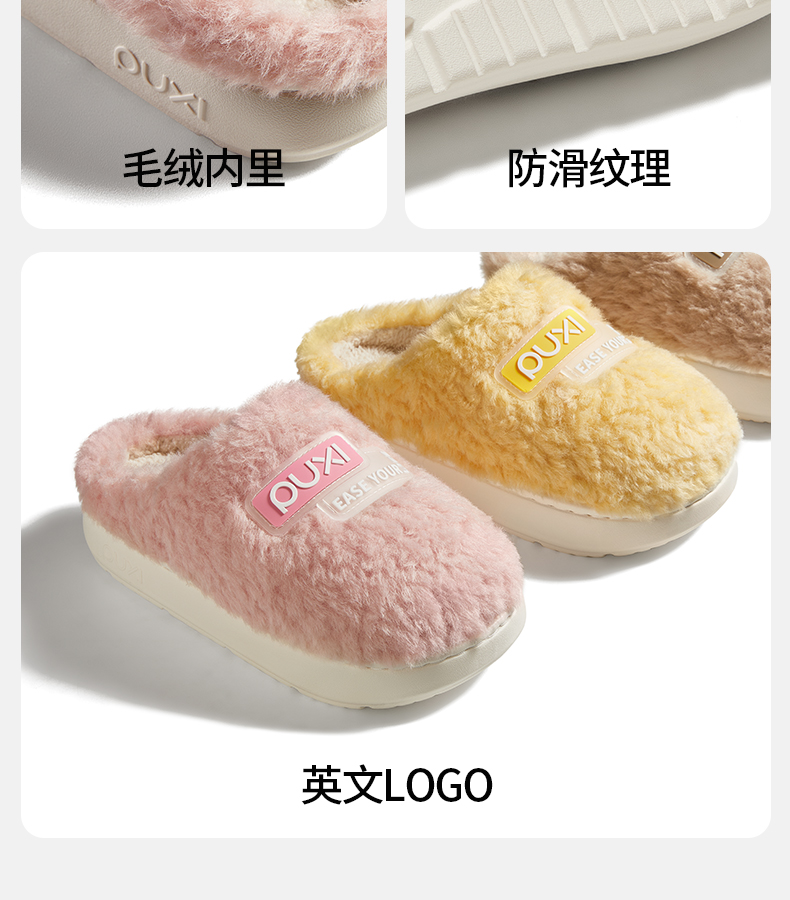朴西芋圆棉拖鞋女踩屎感厚底毛绒保暖秋冬季家居室内防滑软底鞋