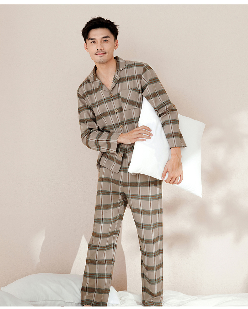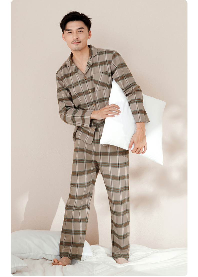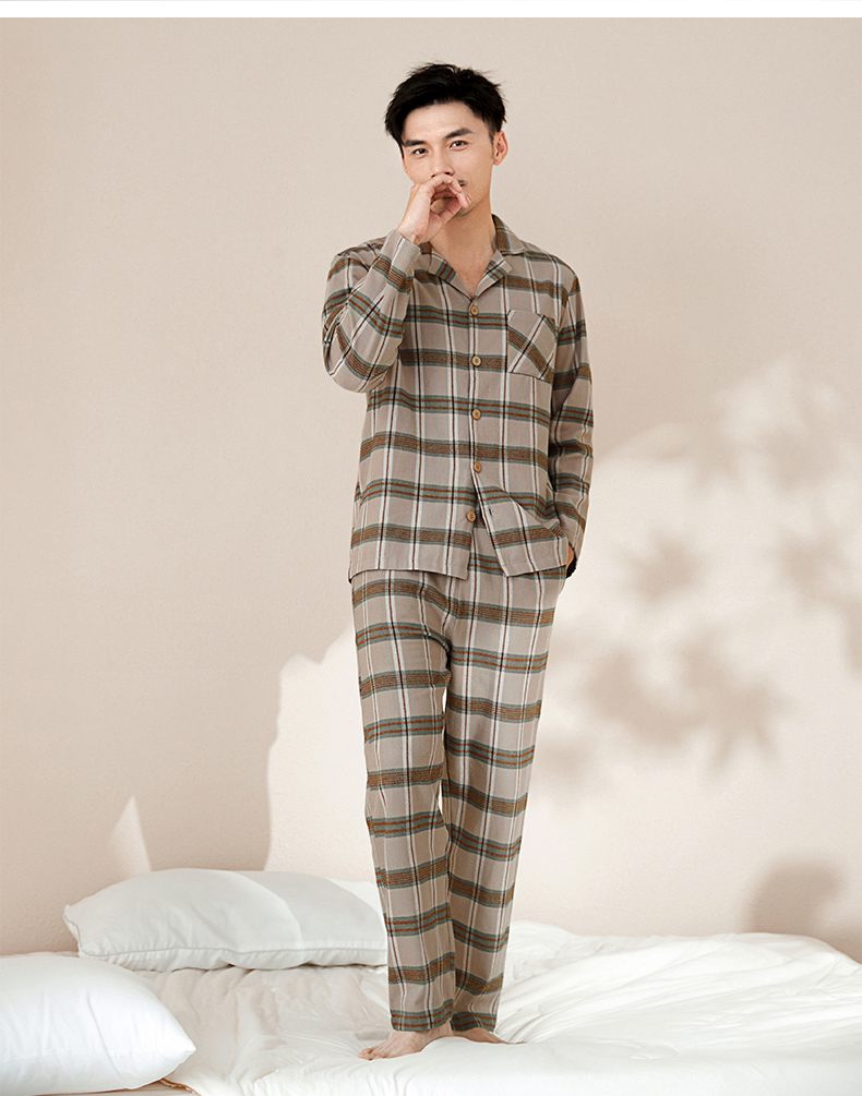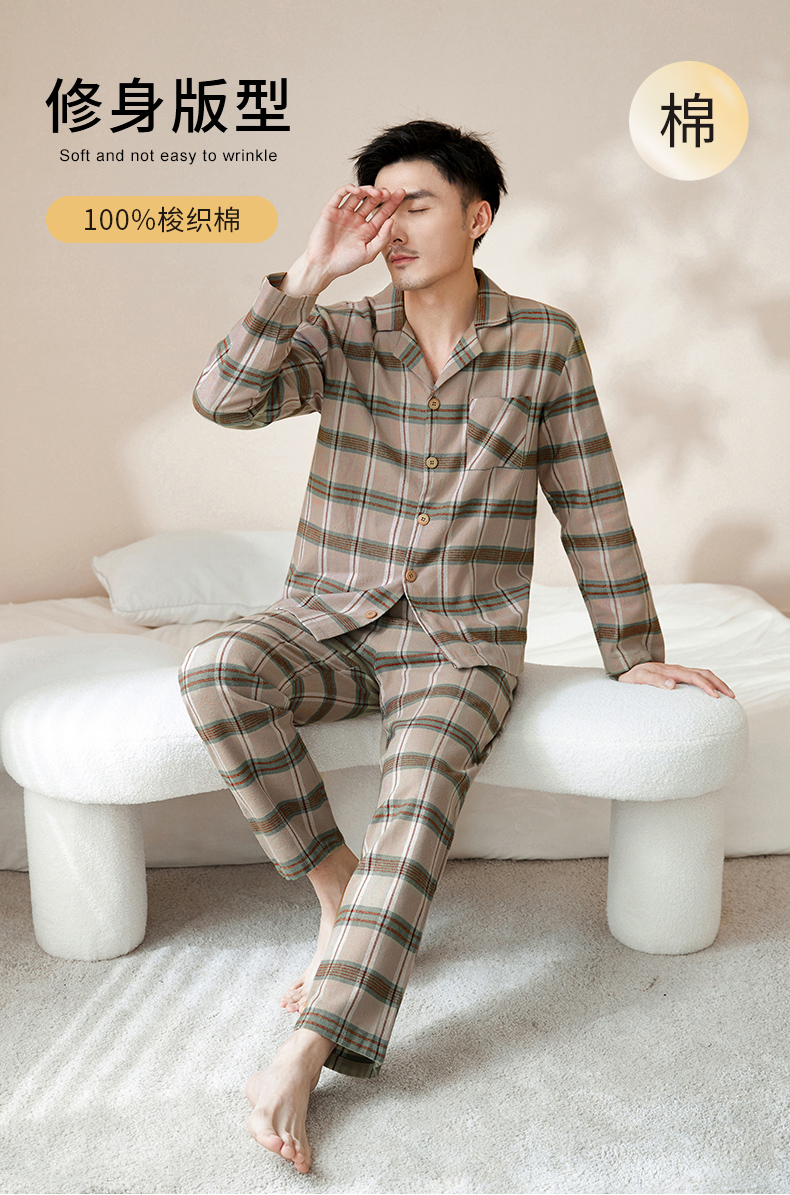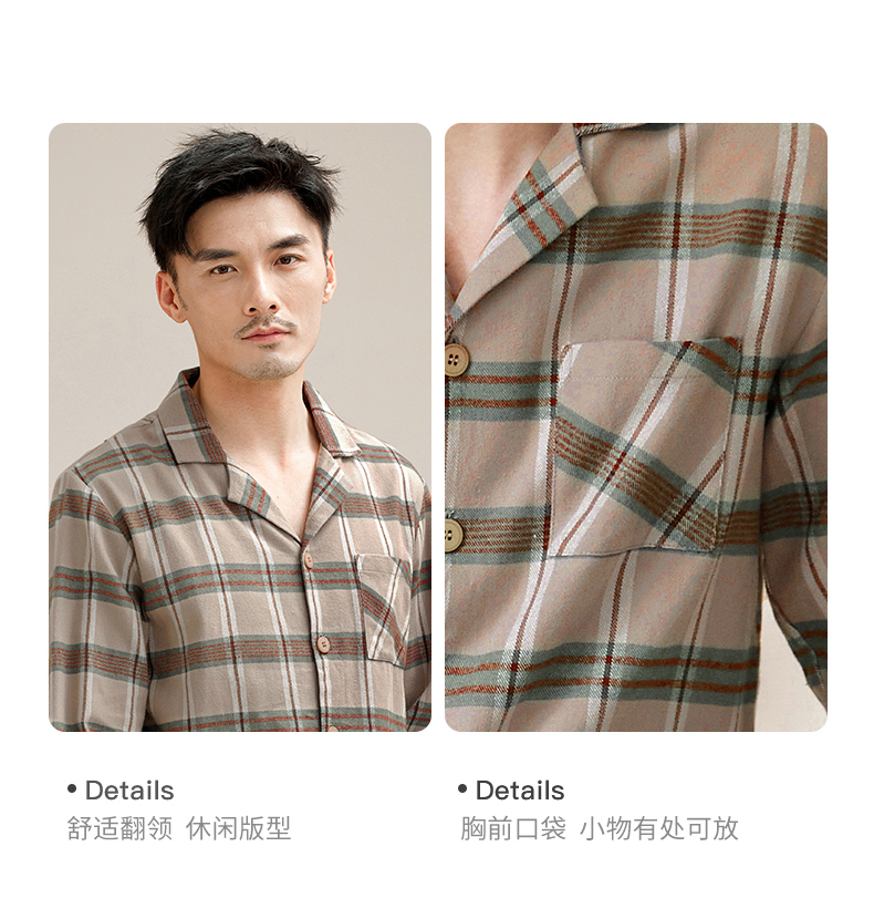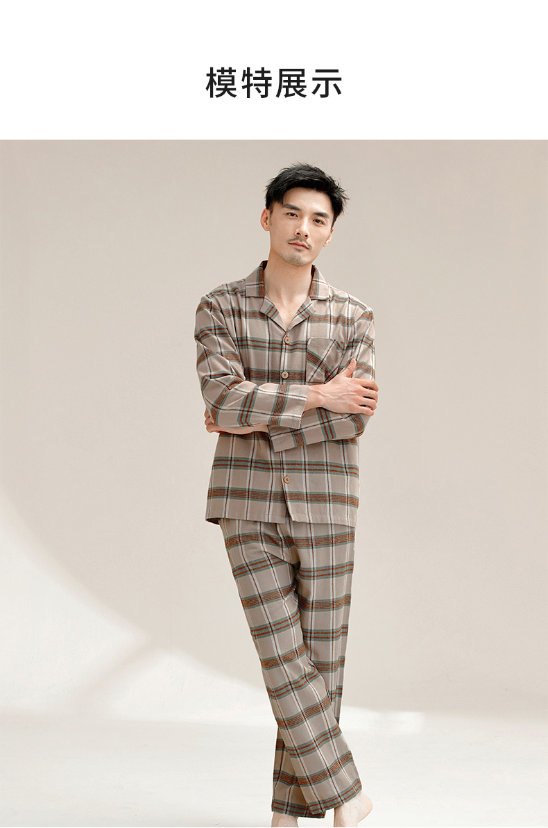 【门店同款】康妮雅睡衣家居服 男式长袖长裤开襟套装